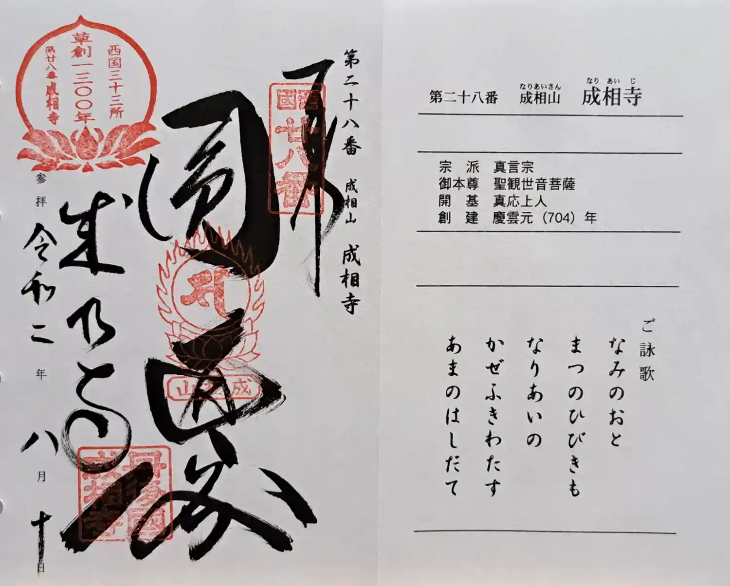 成相寺御詠歌・直書き