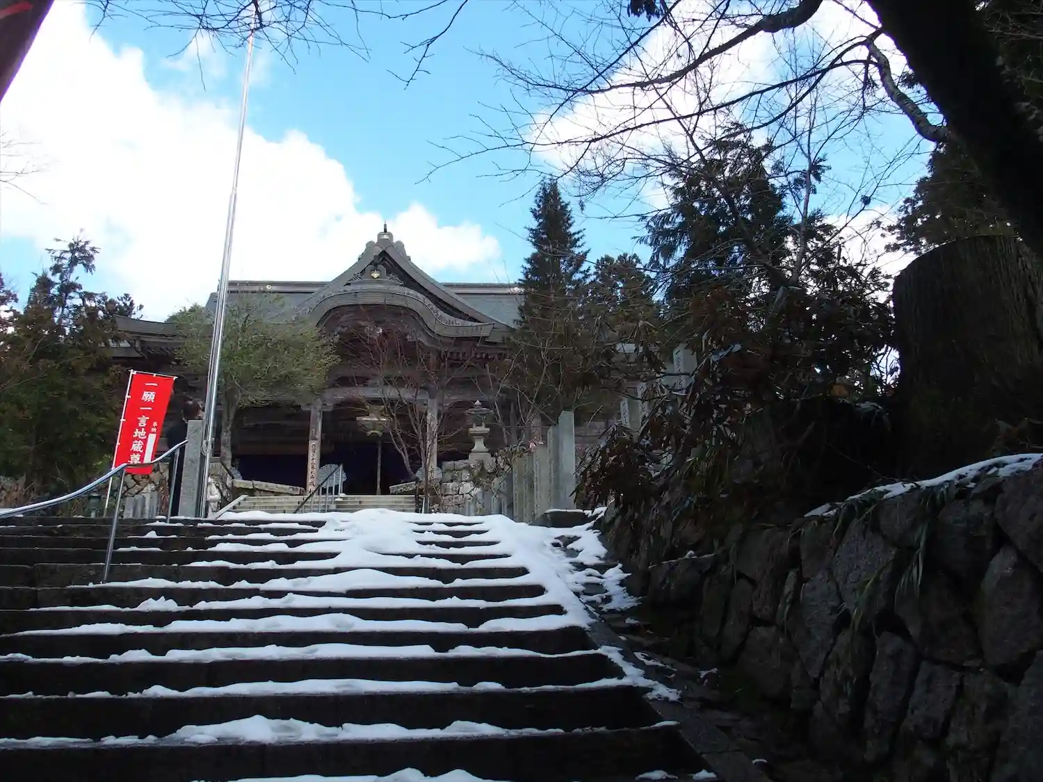 成相寺までの道です。急な坂道で雪積もっているので注意して下さい。