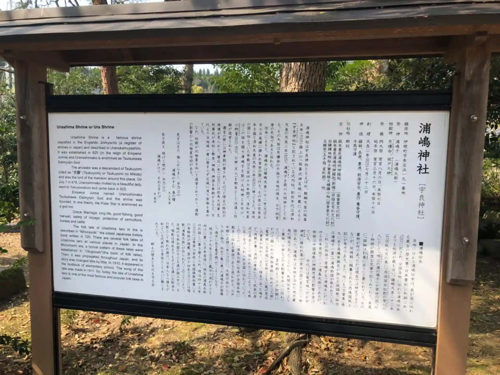 丹後国与謝郡の式内論社です。丹後国風土記に伝承されていた常世の国から300年後に帰ってきたとされる浦嶋子さんを讃えて淳和天皇さまが創建させました。この長い神隠し伝説が浦島太郎の創作の元ネタで一番古いものと言われています。