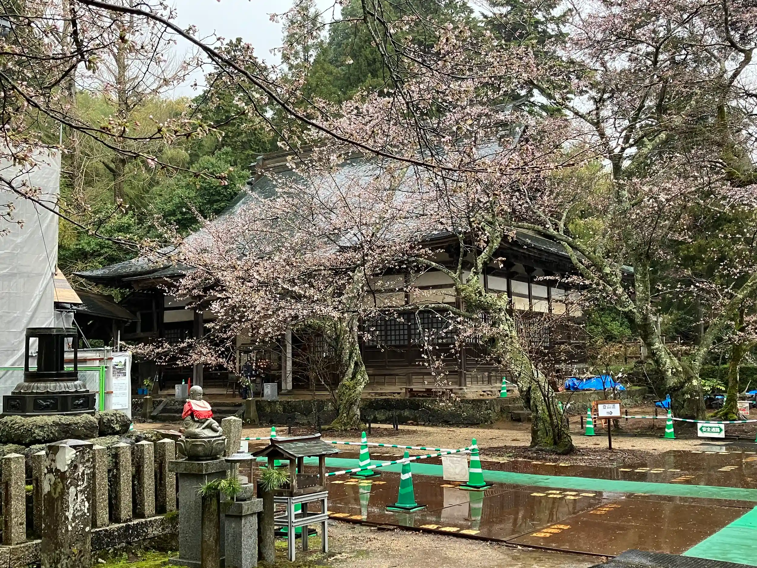 解体工事中であった仁王門が完成し、今は本堂が工事中であった。
