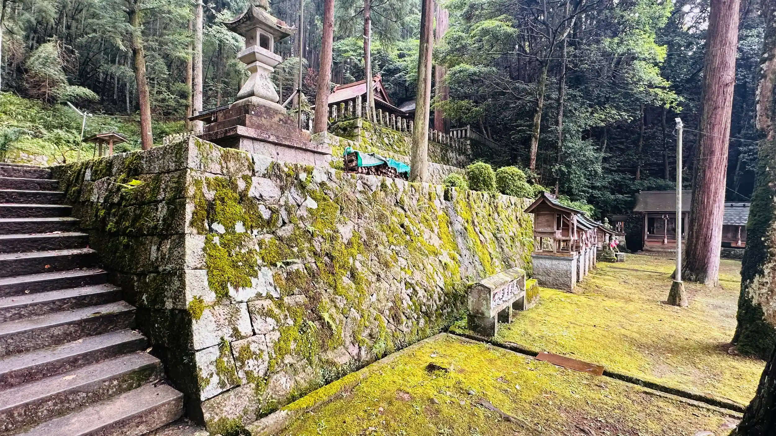ご祭神 誉田別尊 市杵姫大神。延喜式内社の奈具神社に比定社です、この神社では他にはあまり見ない 一の鳥居からの参道を進むと二の鳥居手前に踏み切りがあり境内を横切る電車の景色です、参拝時に電車が走り抜けました! 神社は上下に四層の境内が造られ一番上にガラス張り入母屋造りの綺麗な拝殿と、流造りの優雅な本殿が建立されています。途中にはたくさんの境内社と狛犬が置かれ、深い森の中に綺麗に手入れされた境内や社殿を見ることができます、見どころ満載の神社です