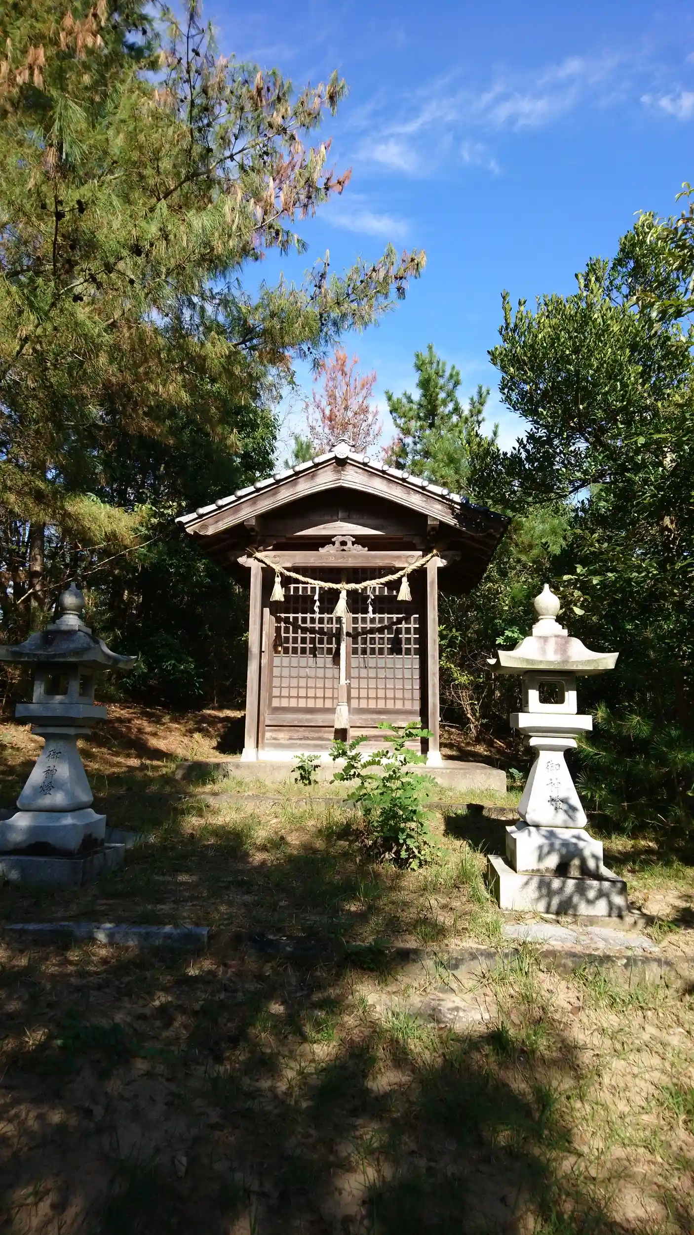 小さな神社です。鳥居はありませんでした。神社の手前を左に行くと景色の良い展望台があります。左側に久美浜湾、右側に日本海が見えます。絶景でした😉