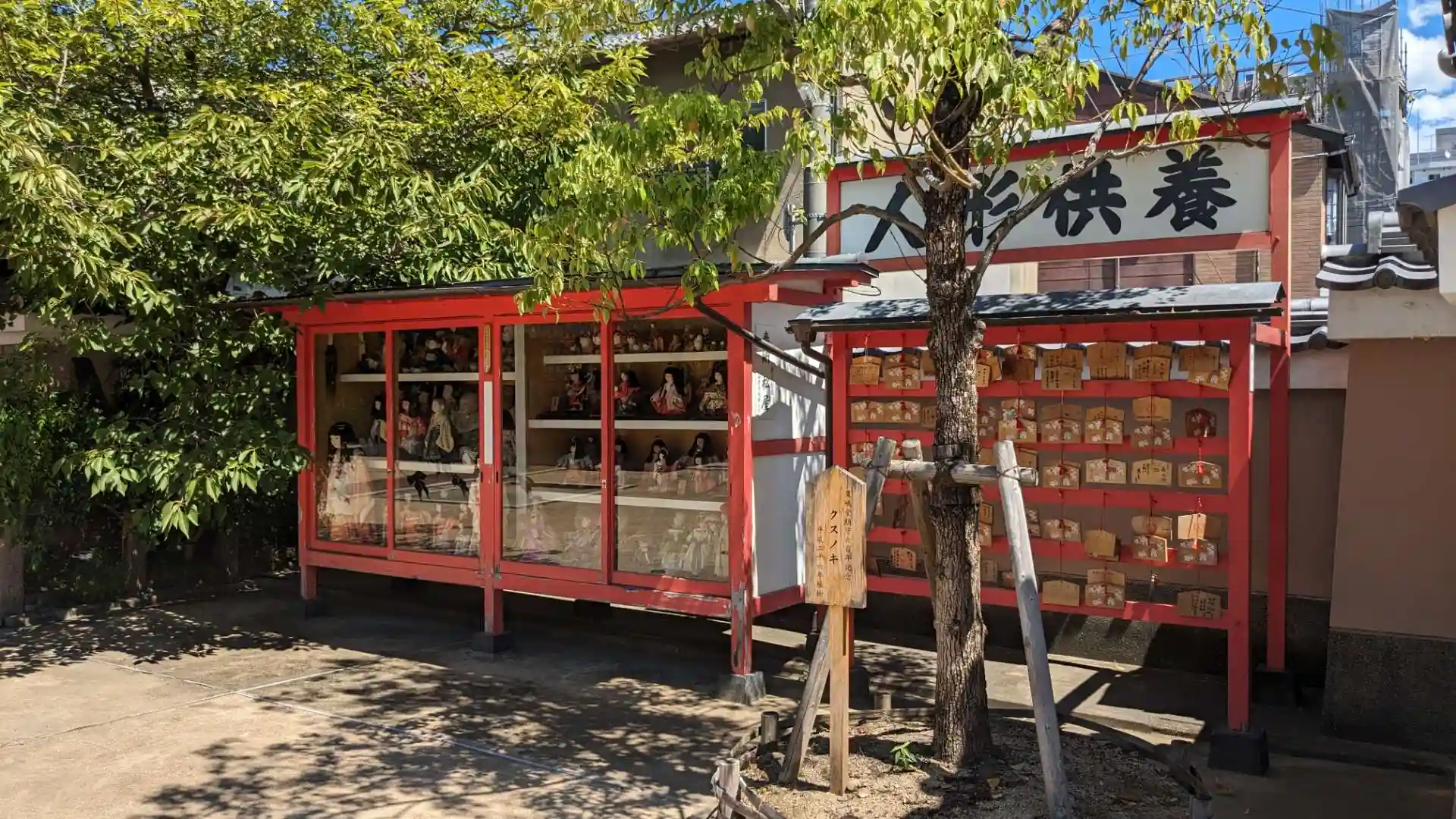 境内にある粟嶋堂は女性を護る粟嶋大明神を祀っていてあわしまさんと呼ばれています。そのため境内の提灯や玉垣に書かれた奉納した人の名前はどれも女性です。また人形供養を行っていて状態の良い人形は境内の人形舎に飾られています。境内には他に末社の咲分稲荷社やびんづるさまがあります。