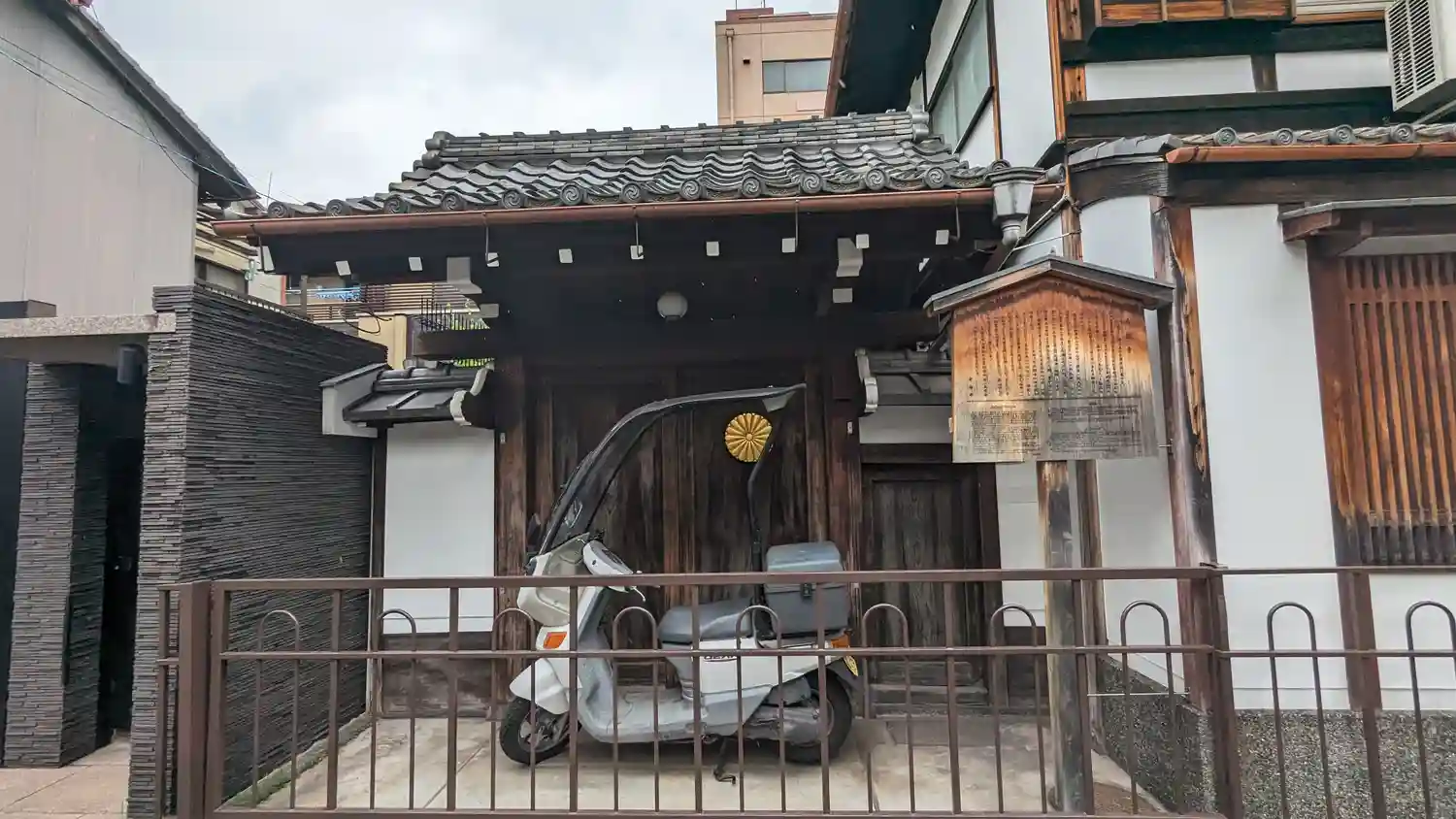 門の手前に鉄柵があって近寄れないのですが 由緒書の看板がありました。