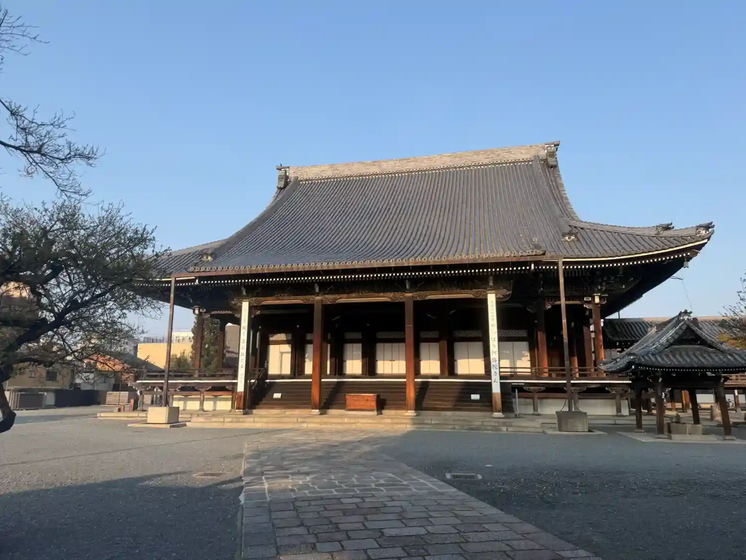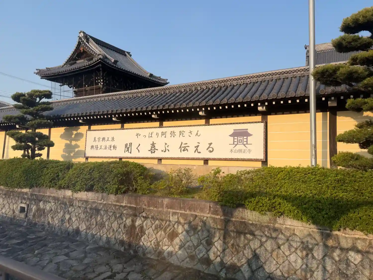 西本願寺の南隣に位置しており かつて西本願寺の脇門跡でしたが 1876年(明治9年)に真宗興正派として独立した際に同派の本山となりました。