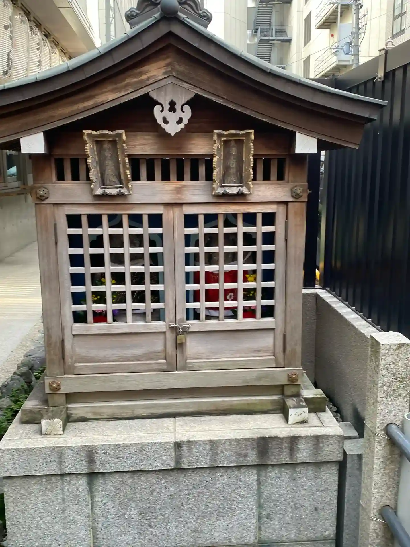 火除け天満宮 四条の交差点のビルの間に たたずむ、見過ごしてしまうくらいの隙間に鎮座している神…