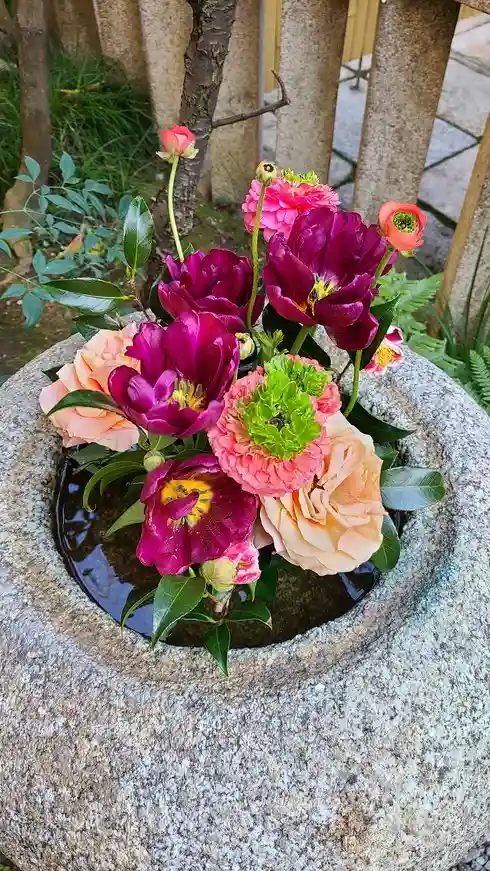 のちの神仏分離令により、寺と社が別れ、縮小し現在の京都にこじんまりと美しく咲く。手入れの行き届いた社は他にもありますが、生け花など細部にわたって美しく、写真を撮らせて頂きました。また、お守りを受ける時にたいそう願をかけて渡して頂けます。絶対郵送より効き目ある気がしますよ。