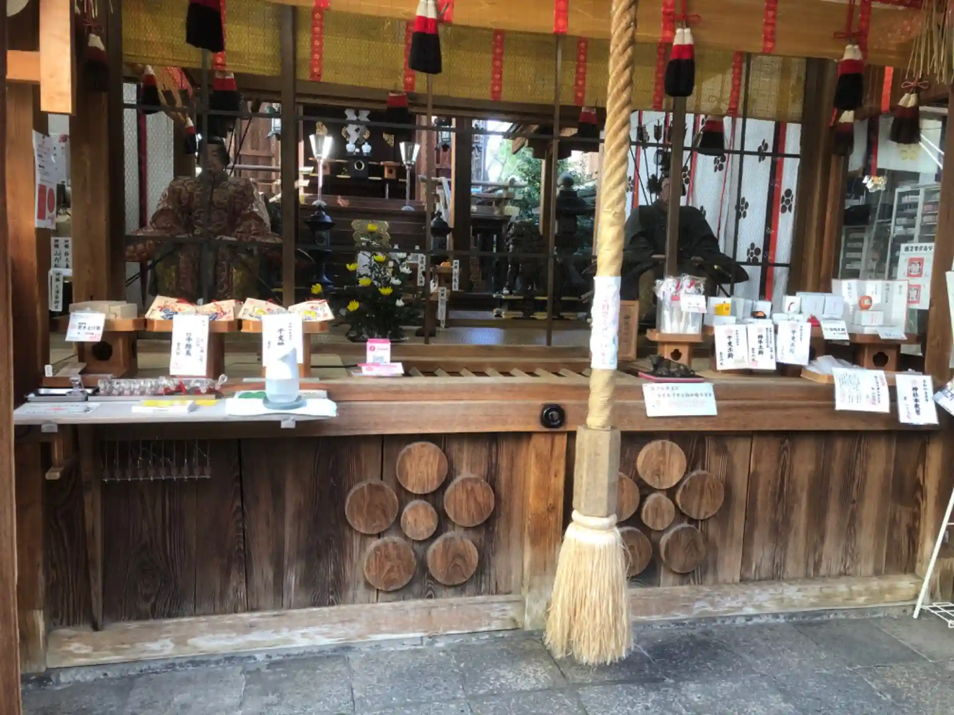 授与所が狭いので授与品は拝殿周りまで並んでいます。