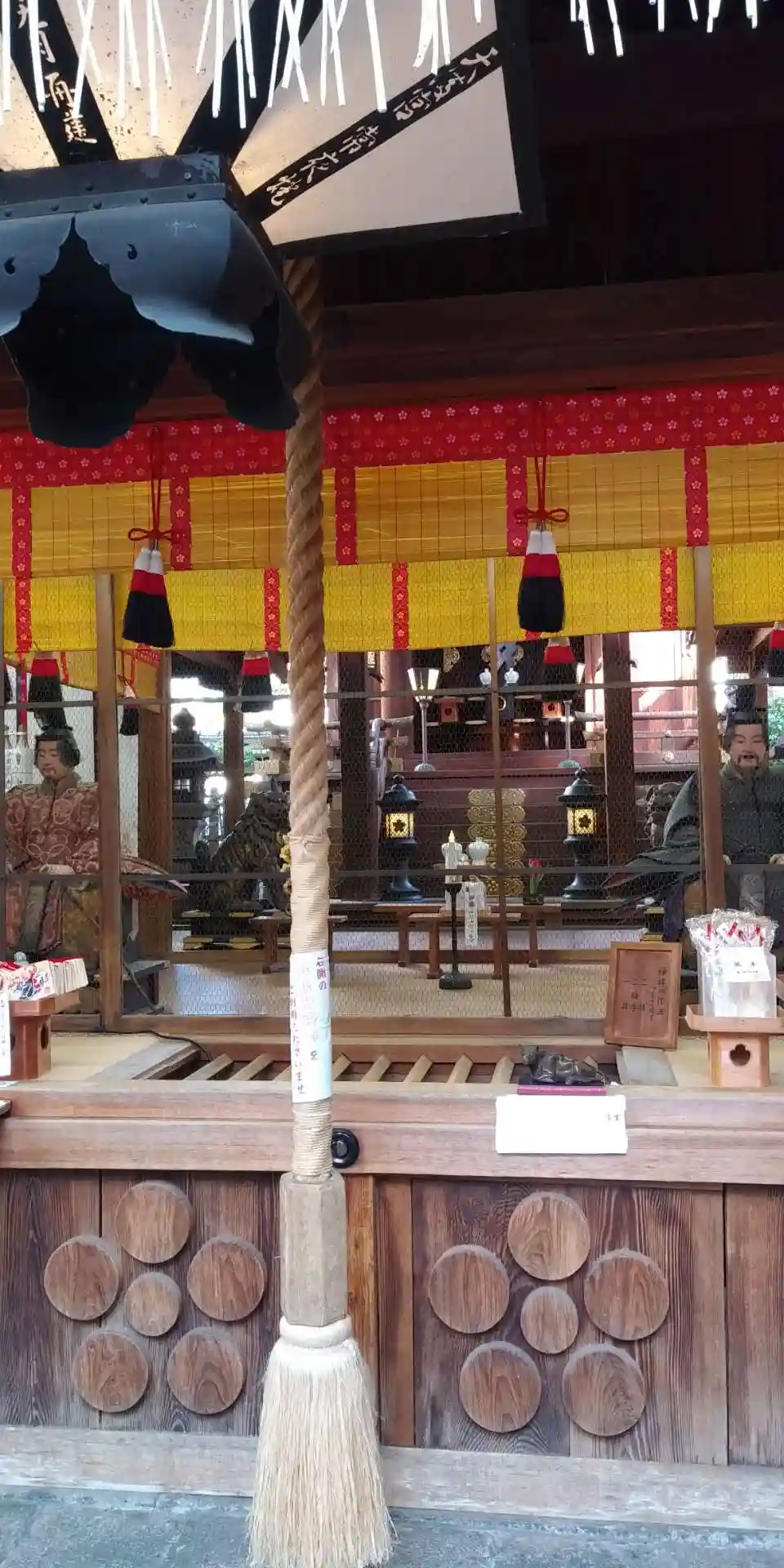 授与所が狭いので授与品は拝殿周りまで並んでいます。