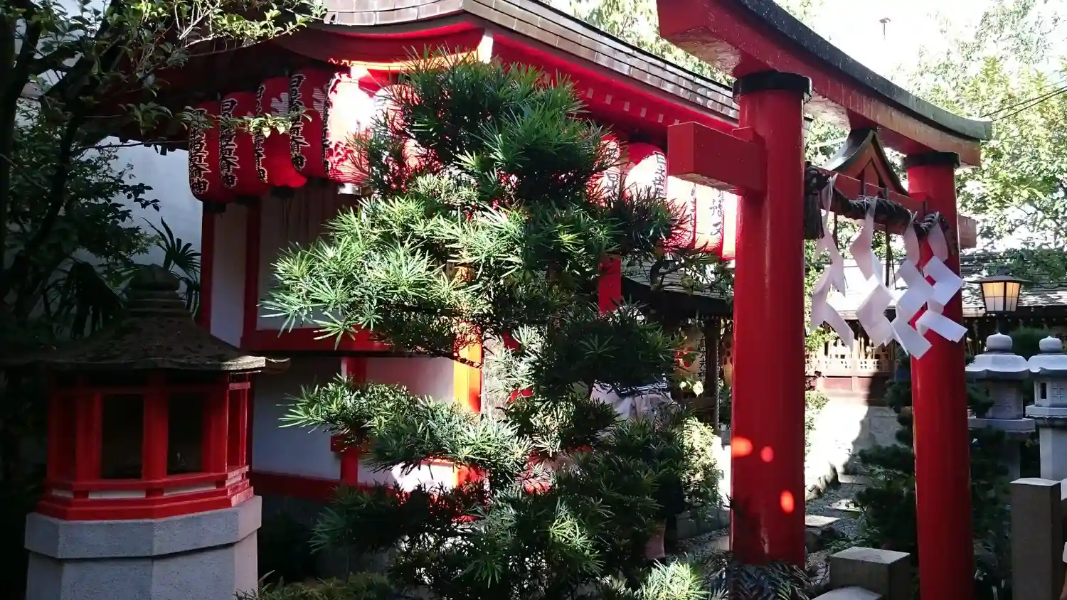 新京極通の賑わいの中に、たくさんのちょうちんが目につく神社。