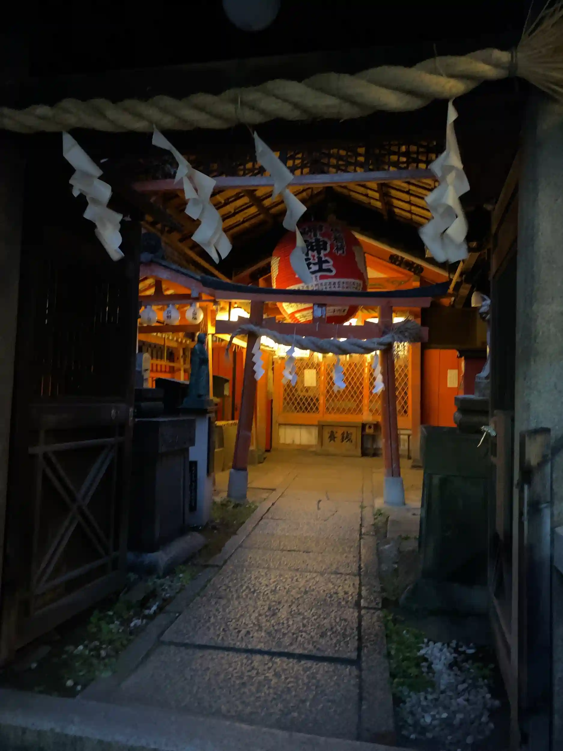 病気が治った今でも人混みが苦手なのヨネ😓ということで、路地に逃げ込んだら、なにやら良さげな赤提灯。京都らしい、ちいさなお宮さんに出会いました✌️