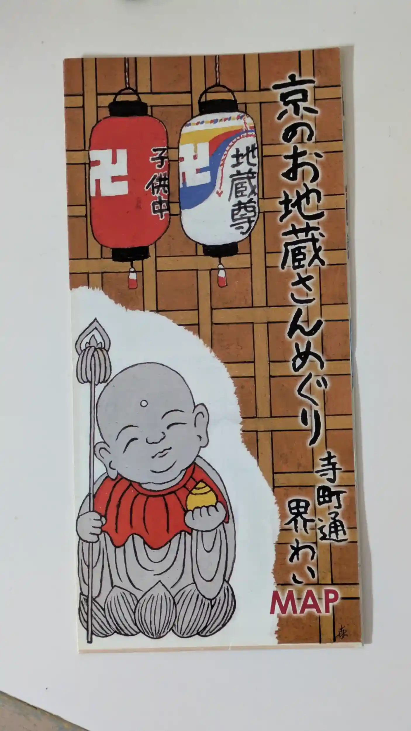 洛陽四十八願地蔵菩薩第33番。鯉地蔵。足利義政の時代、主人の手紙を届けようとした下男が鴨川を渡る途中、川の中に文箱を落として困っていたとき、日頃熱心に信仰していた地蔵が鯉に身を変えて、文箱をくわえて戻ってきたのが名前の由来である。とのこと😲御朱印の書き手の方は四十八願のことはご存じなかったのですがご住職はご存知でした。少しお話をさせていただき、地蔵霊場まわるならと「京のお地蔵さんめぐり寺町通り界わいMAP」をいただきました🤗お地蔵さんの写真や由緒などが書かれておりなかなか地蔵好きにはありがたいパンフレットです😍新京極・寺町界隈の地蔵霊場は御詠歌の額が残っている所も多いので霊場巡礼気分を味わってみるのも良いかも🤗