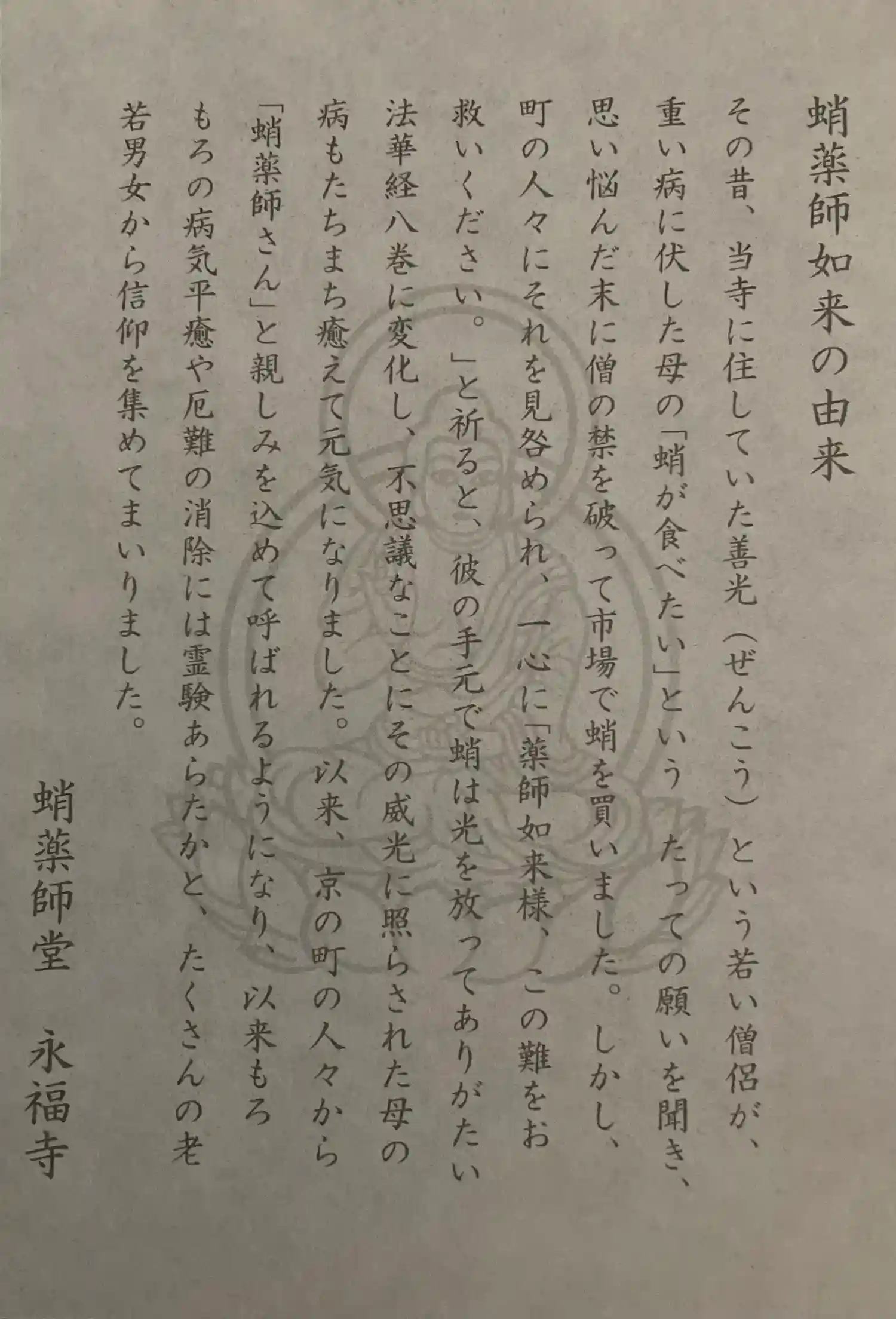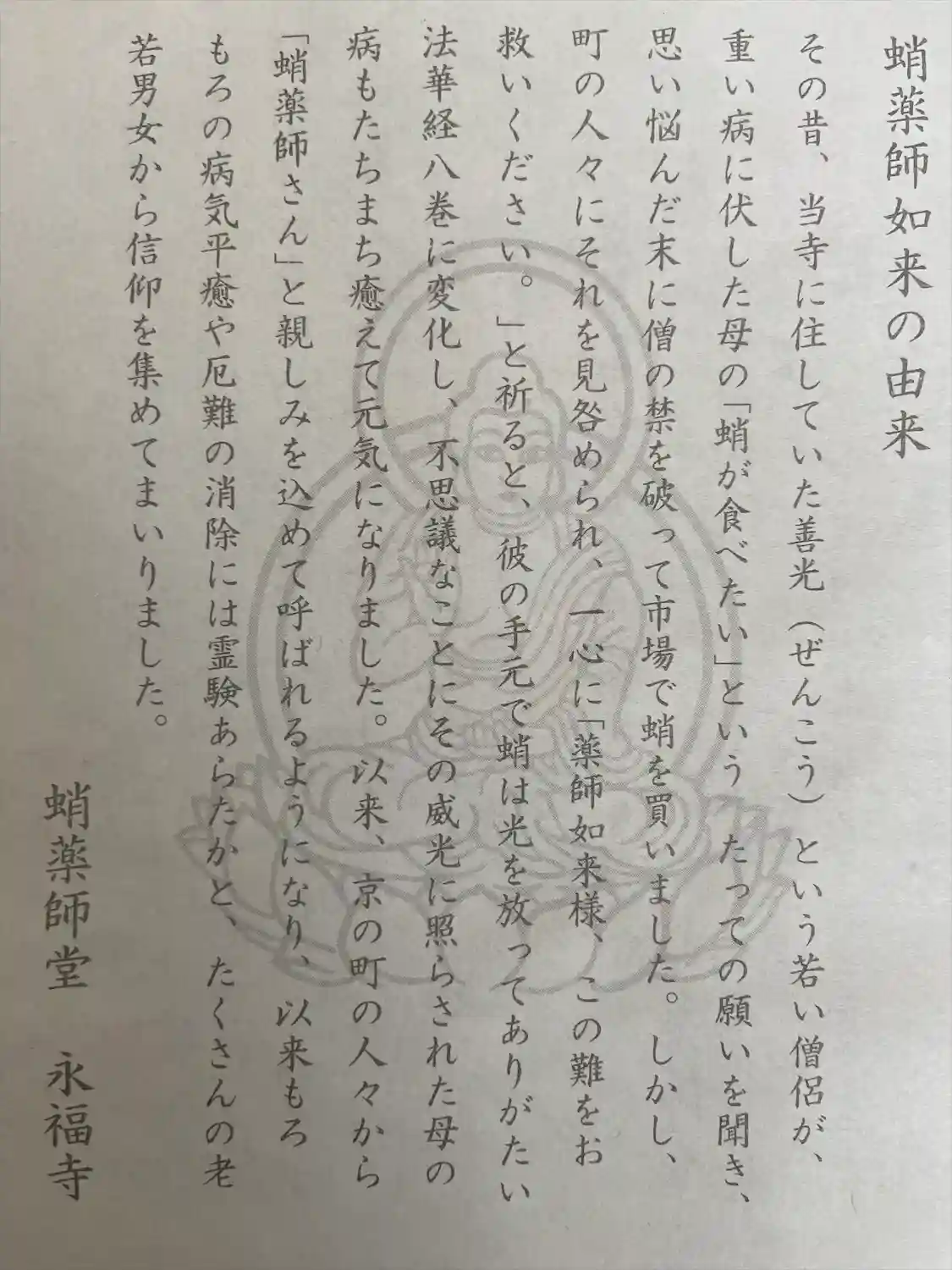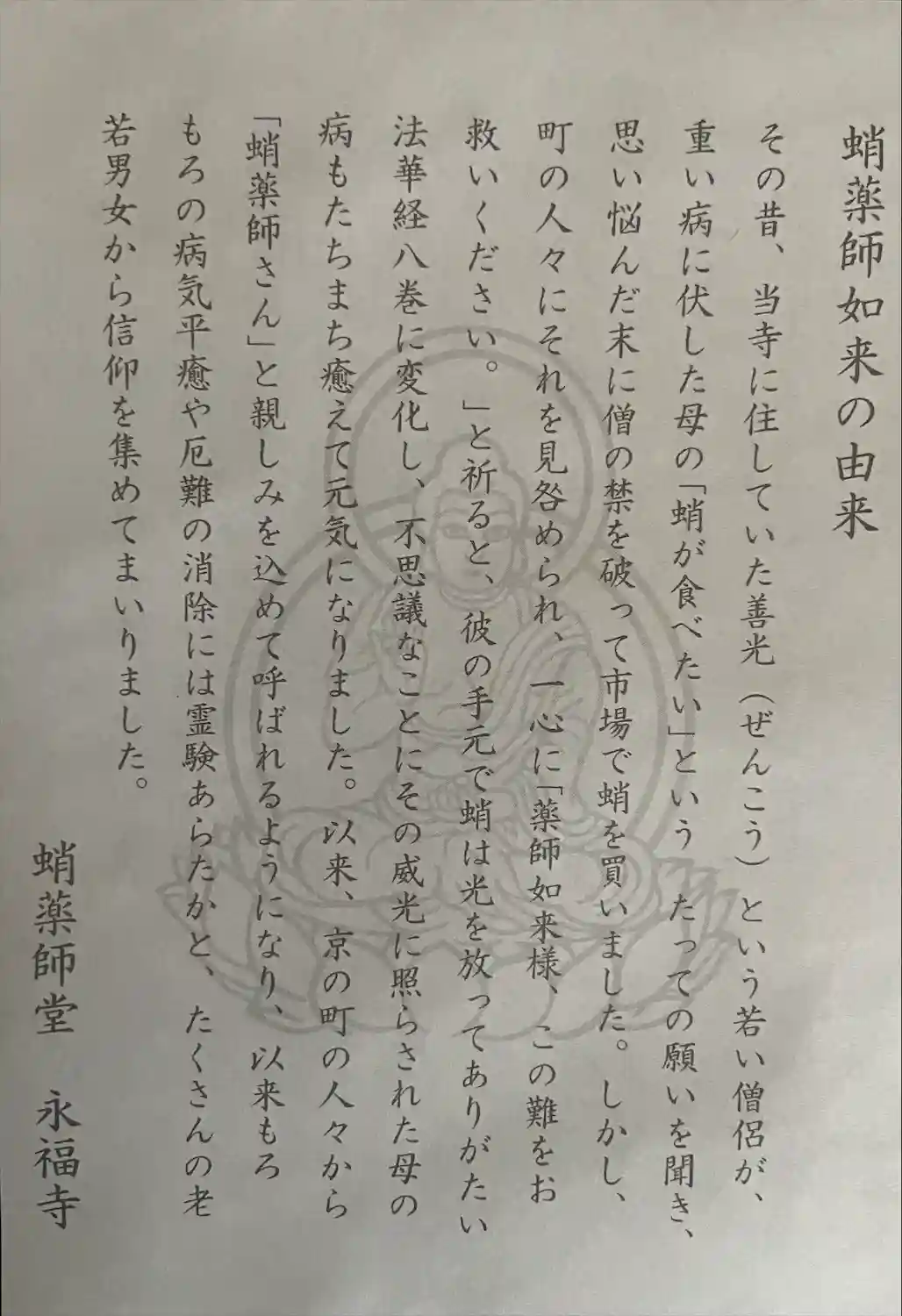 挾み紙:蛸薬師如来の由来