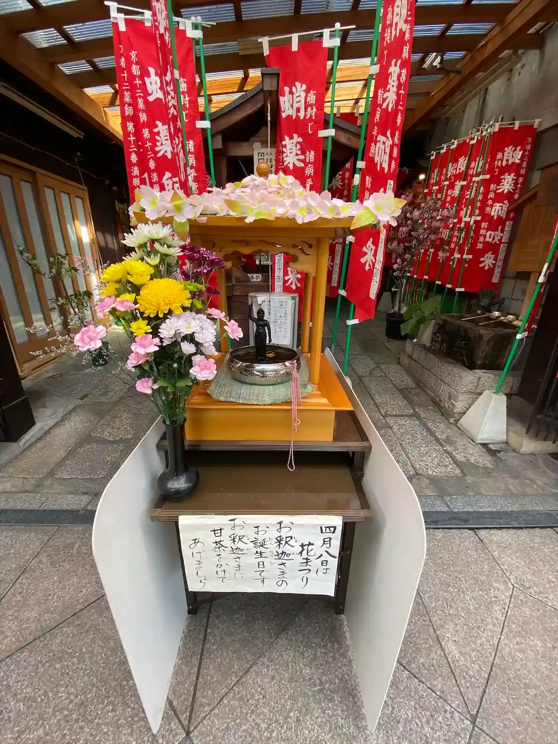 京都の繁華街、新京極通りにある小さなお堂でした。まるで商店街のお店の一つのような立地は京都ならで…