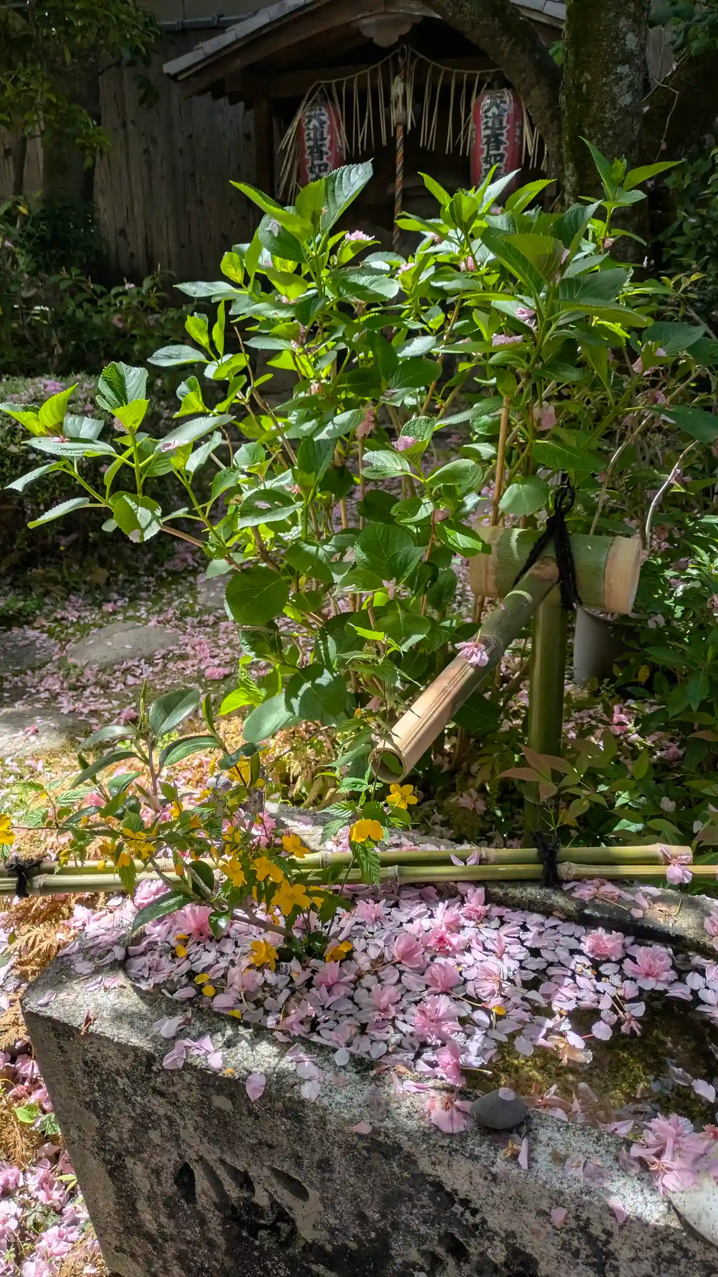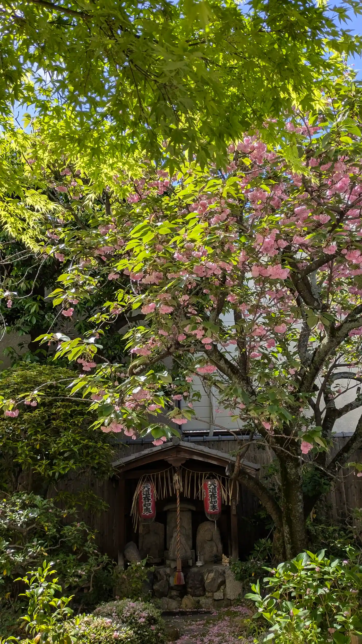 地蔵菩薩縁日で御朱印拝受にお詣り。八重桜の桜吹雪がなかなかすごいことに😅境内の井戸掘りは終わったようであとは配管などの工事があるそうです。弁天さんの前のオオデマリがようやく白い花に変わっていました🤗境内広くはないですがあちこちにお花があるので飽きないですね😊亀さんも陸に上がっていることが多くなってるみたい。そういえば子亀ちゃん見ないけどどうしたんだろう・・・?