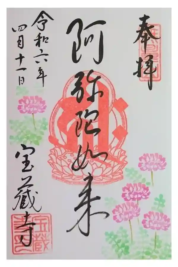 宝蔵寺(阿弥陀如来)の御朱印を直書きでいただきました。れんげのスタンプがいいです💕