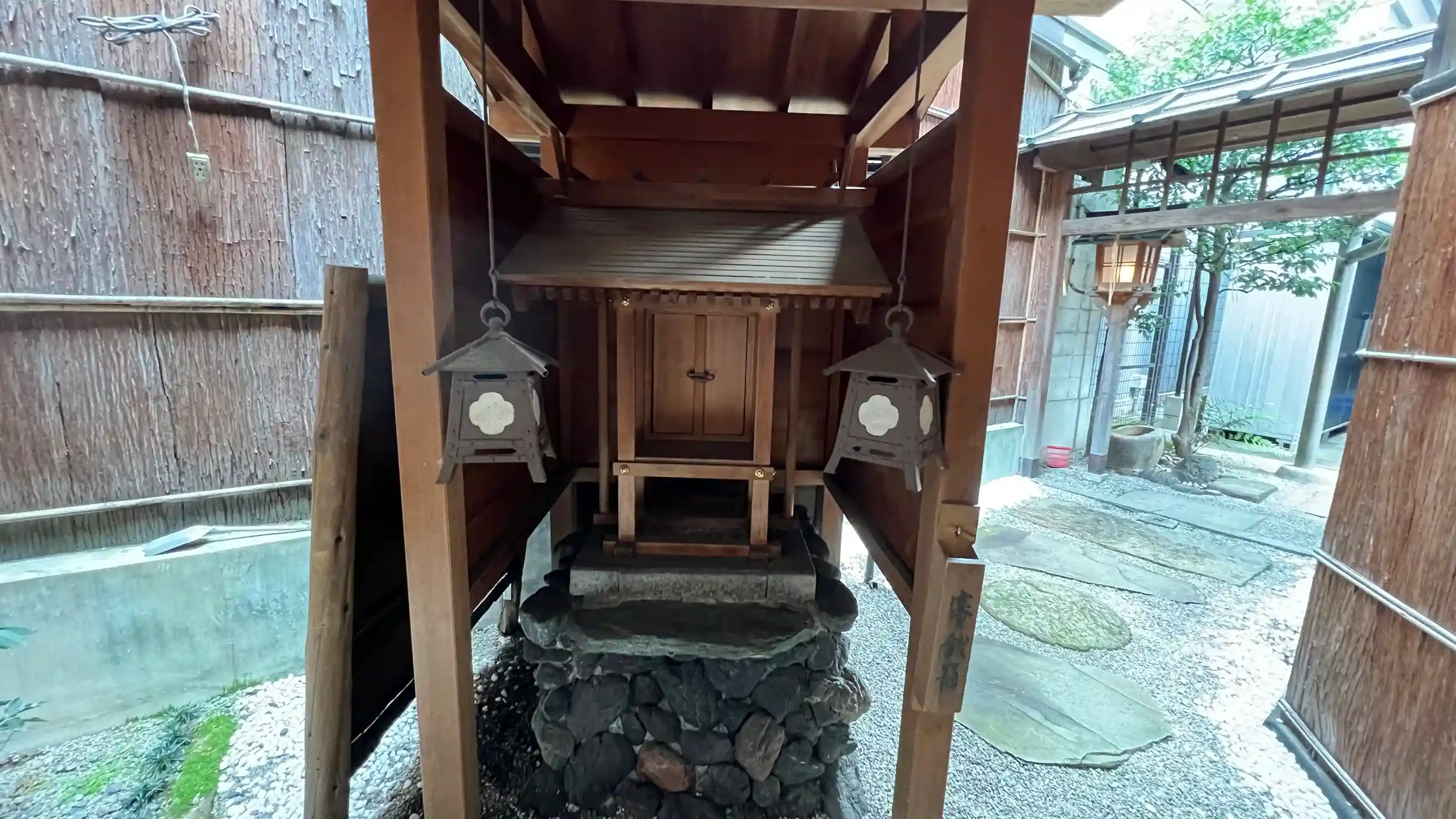 周囲は高い長屋の壁で覆われなんか圧迫感。鳥居の所閉められたら終わりやん。