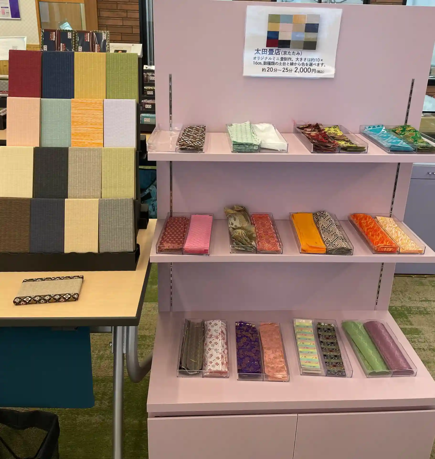 自分の好きな畳の色、周りの生地の柄を選んでいただき、専用の工具を使って仕上げていきます🛠️