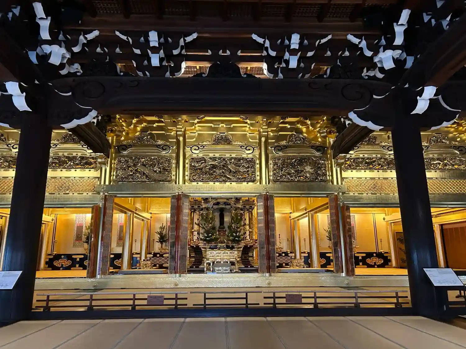 屋根の壁面の彫金も見事