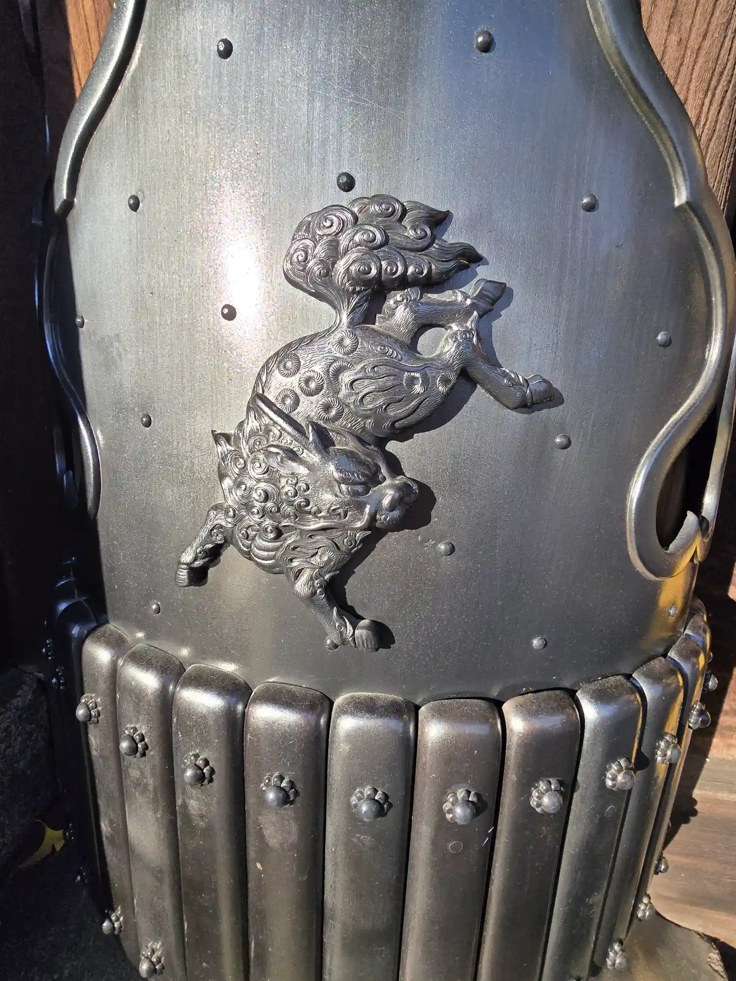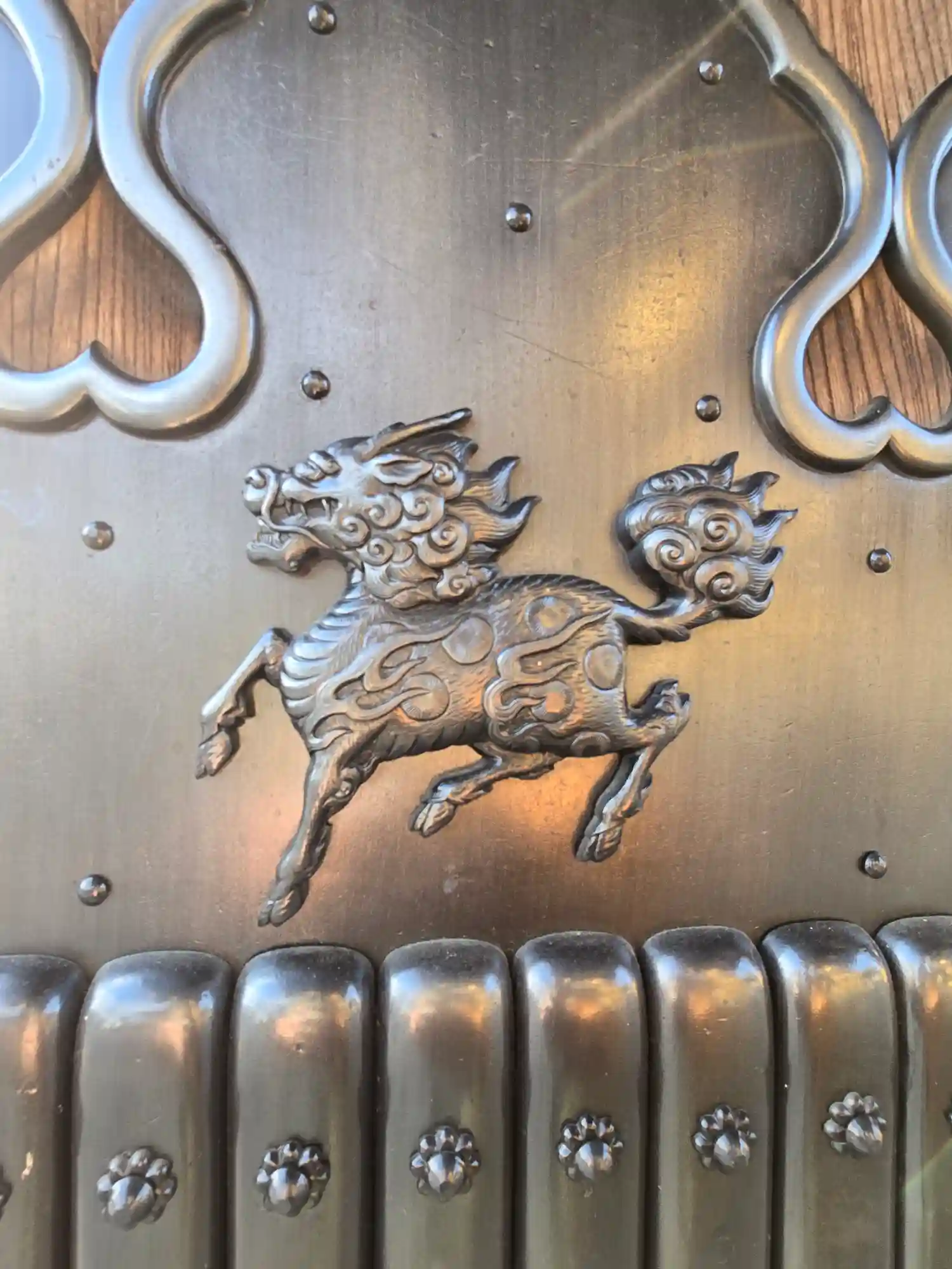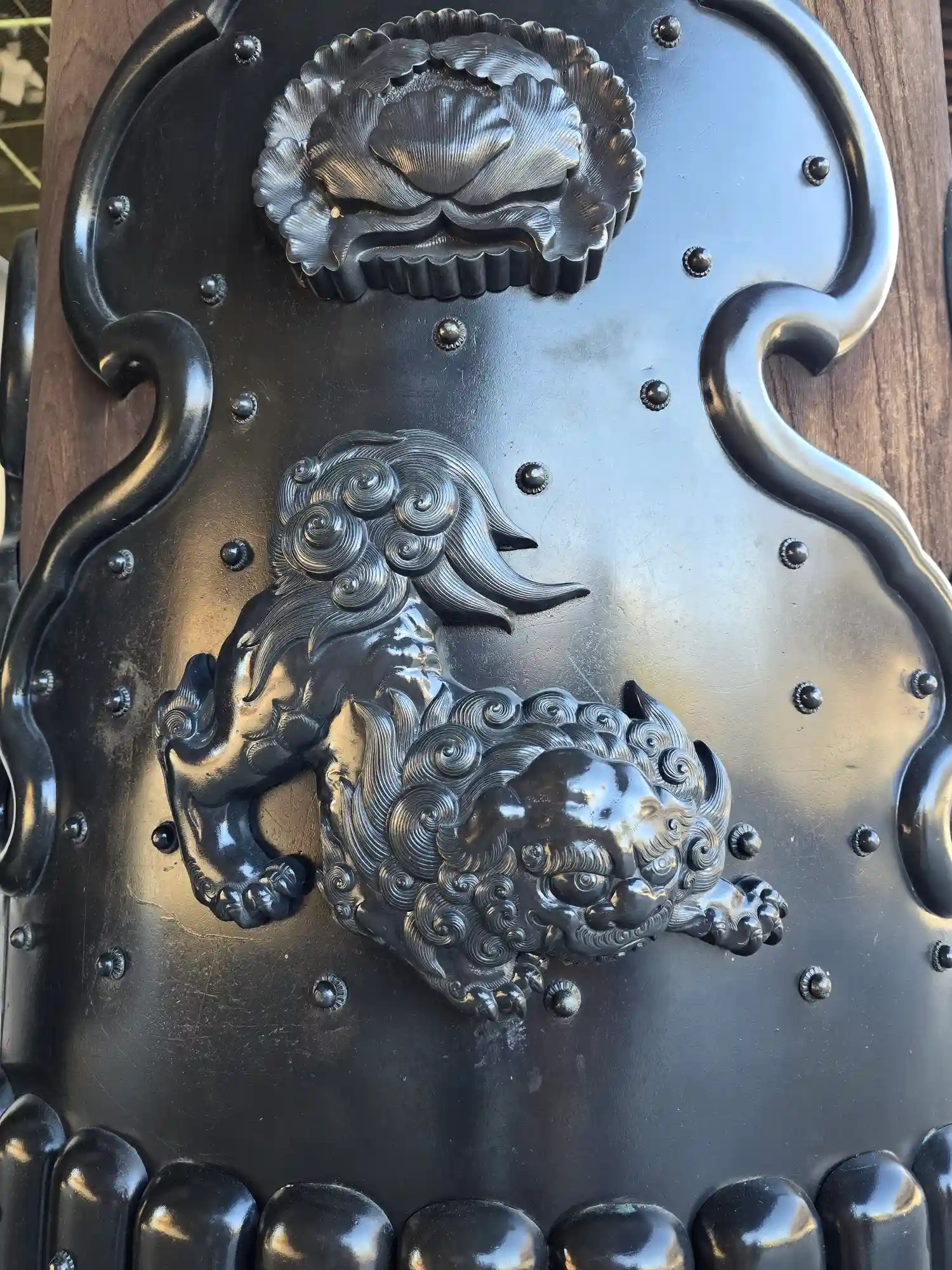 御影門柱根巻にデザインされた32獅子のうちのひとつ。