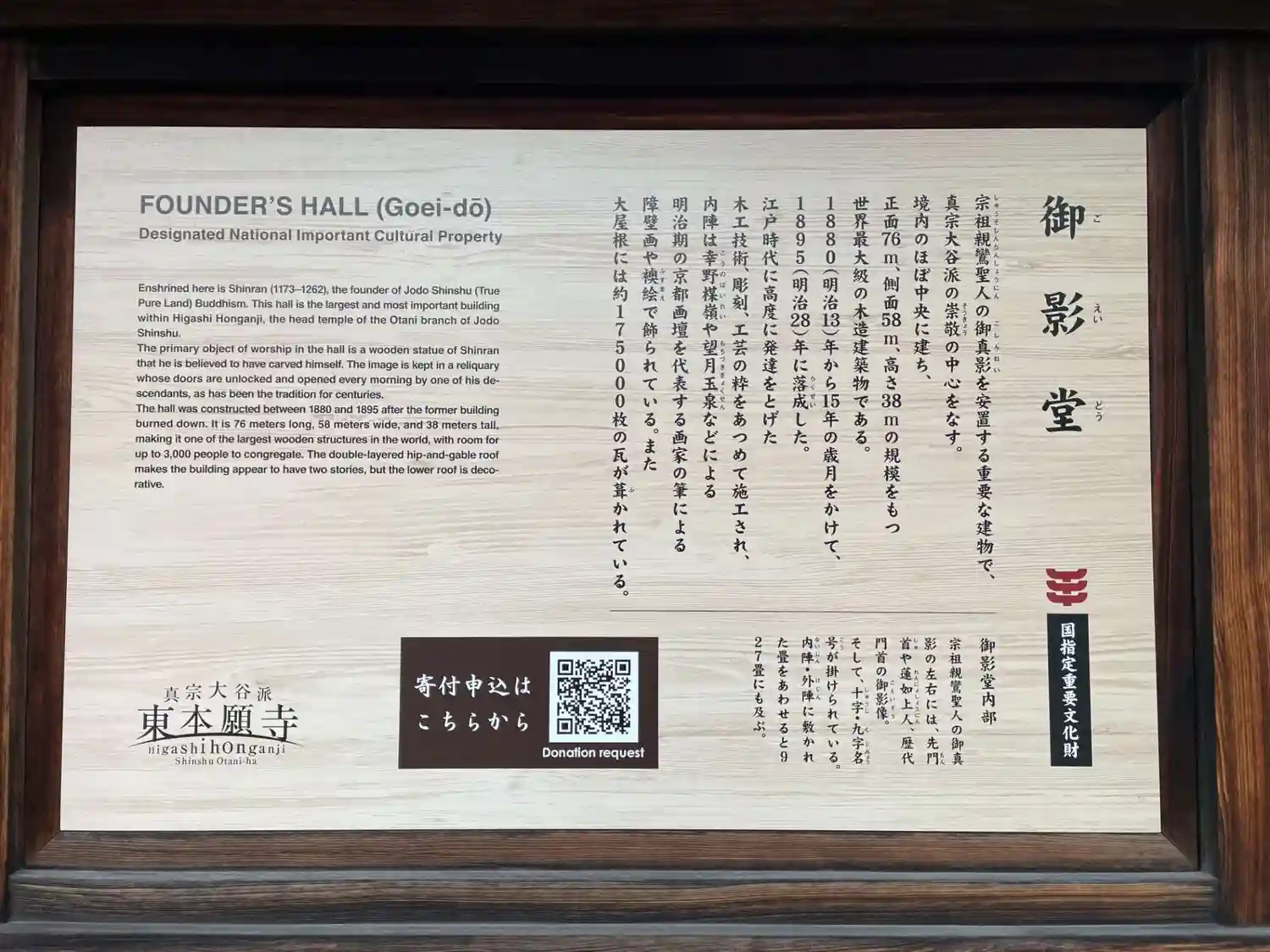 御影堂門そばの由緒書