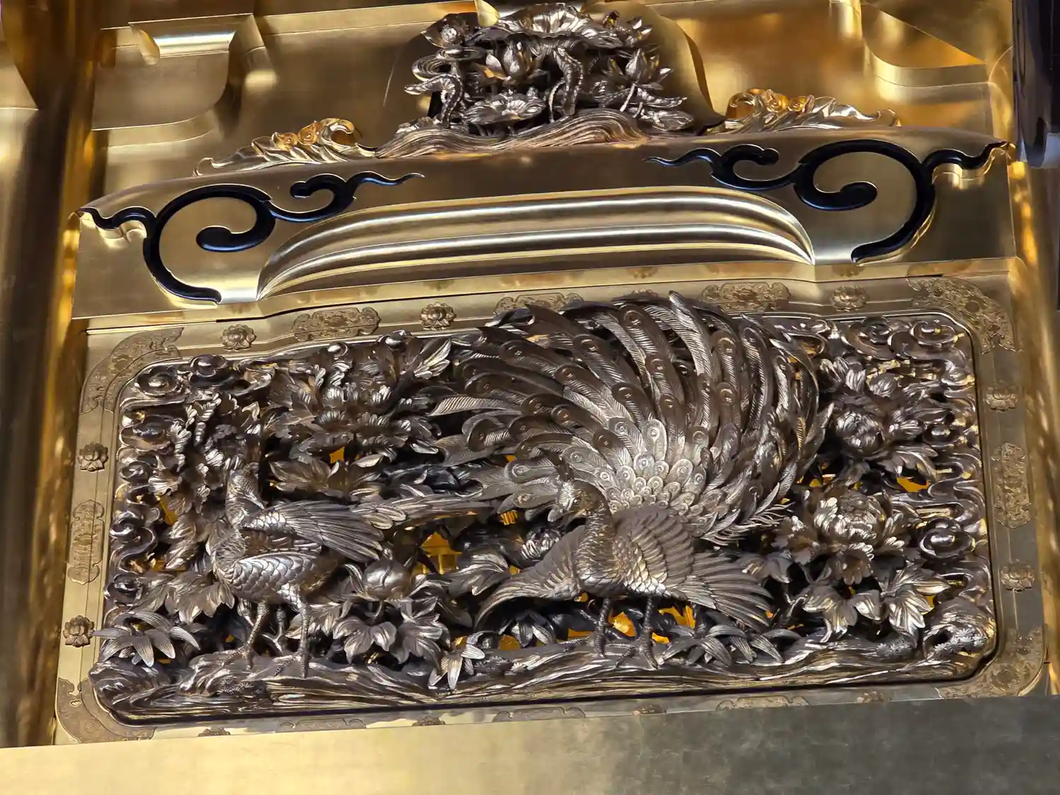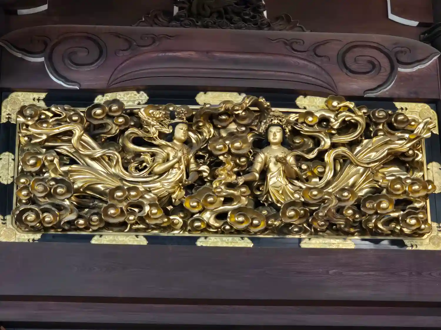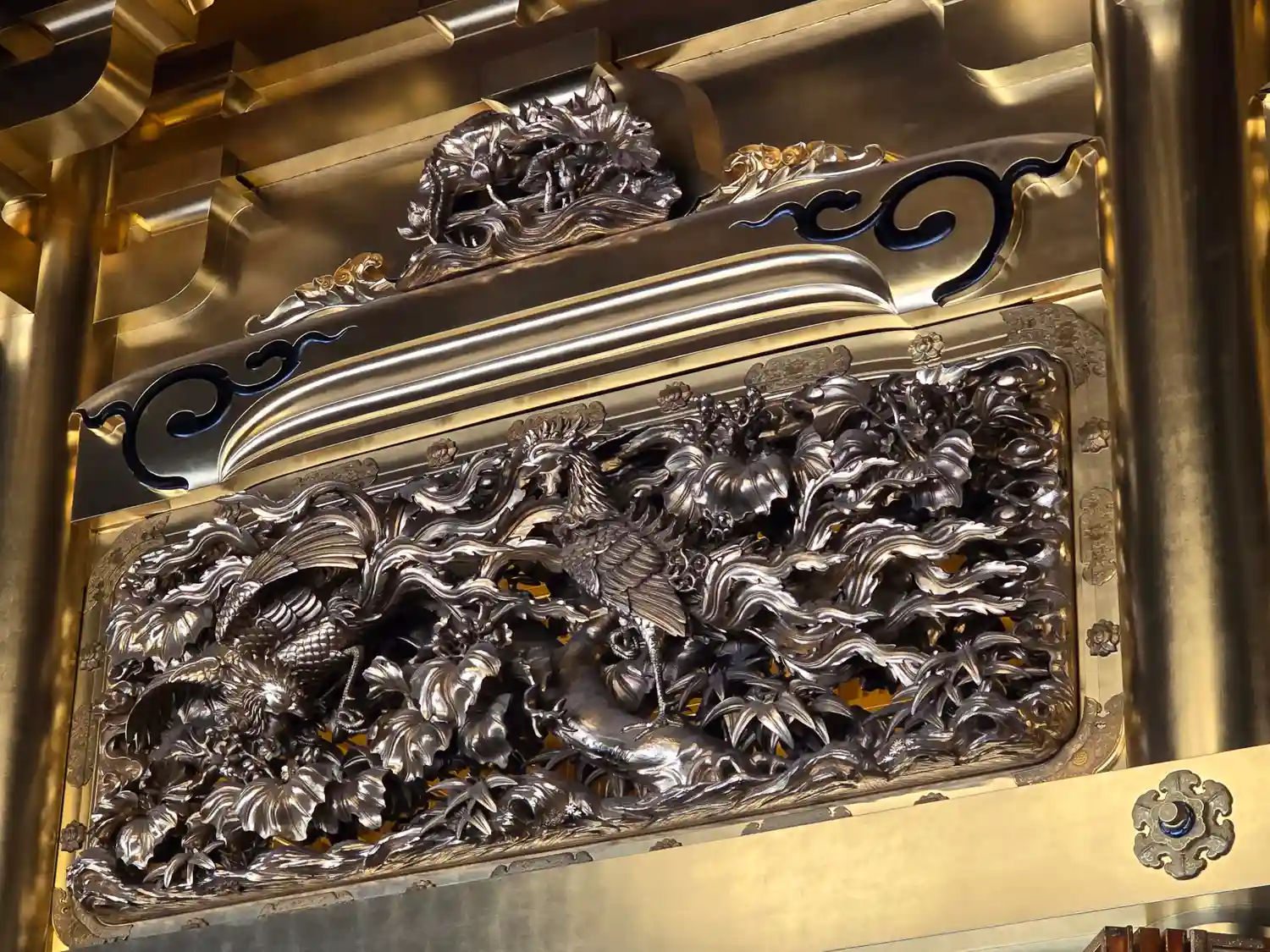 屋根の壁面の彫金も見事