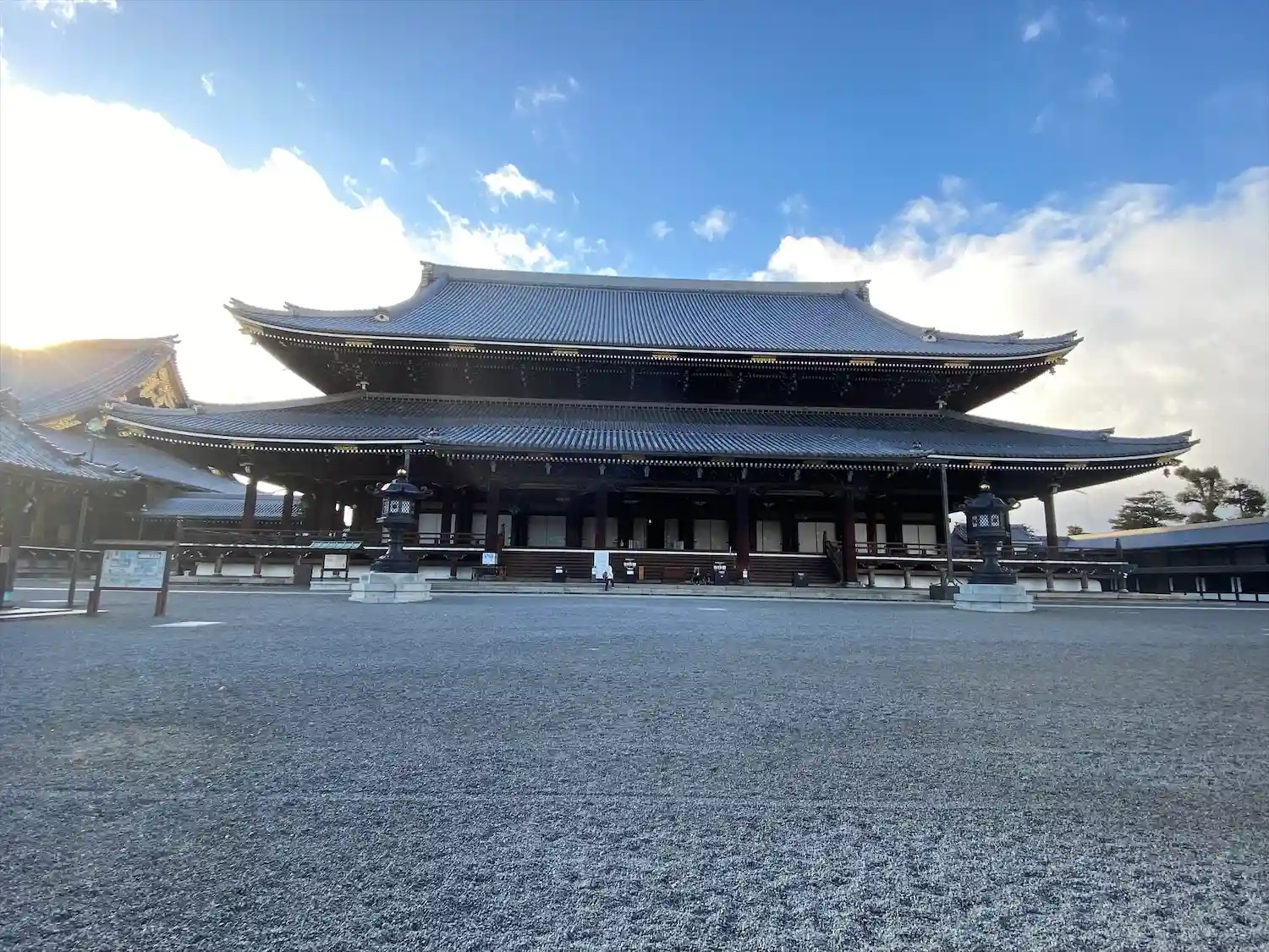 京都駅から一番近いお寺(だと思います)東本願寺さんです。京都タワーのお風呂でスッキリした後に朝早く…