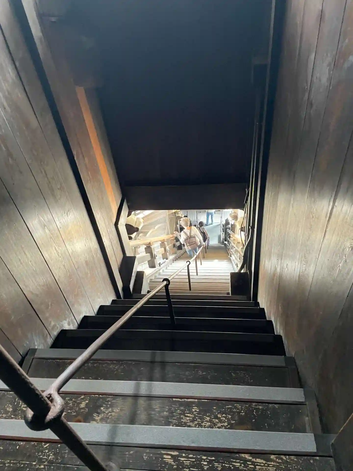 急な階段を下りなくちゃ