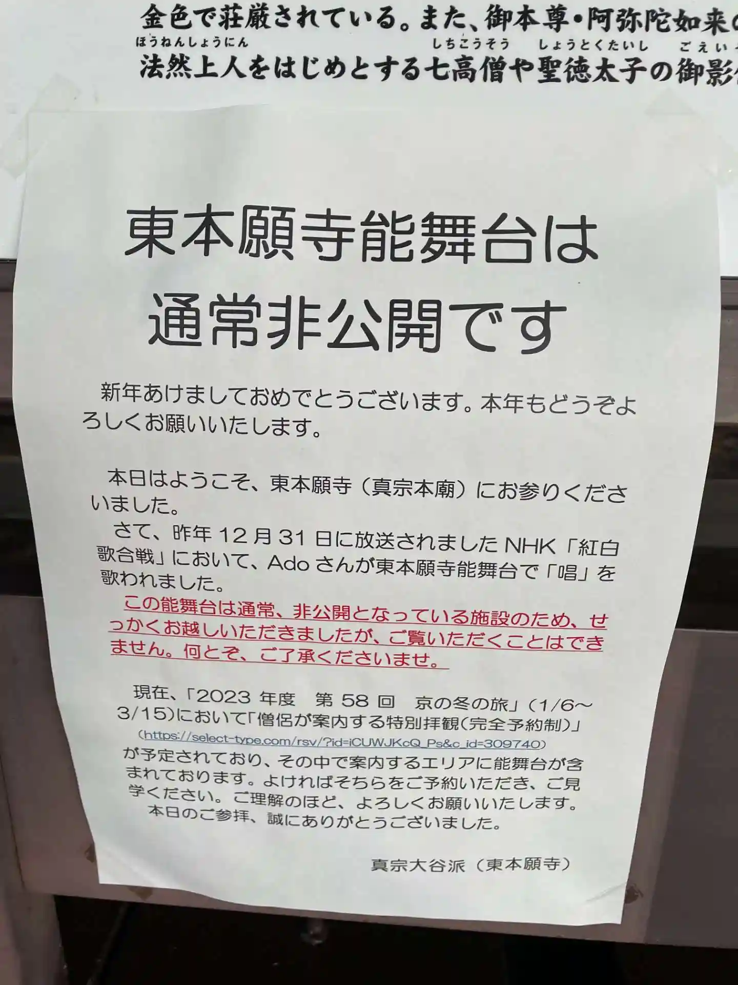 京の冬の旅の特別公開で行きました。この年は東本願寺前に花子
