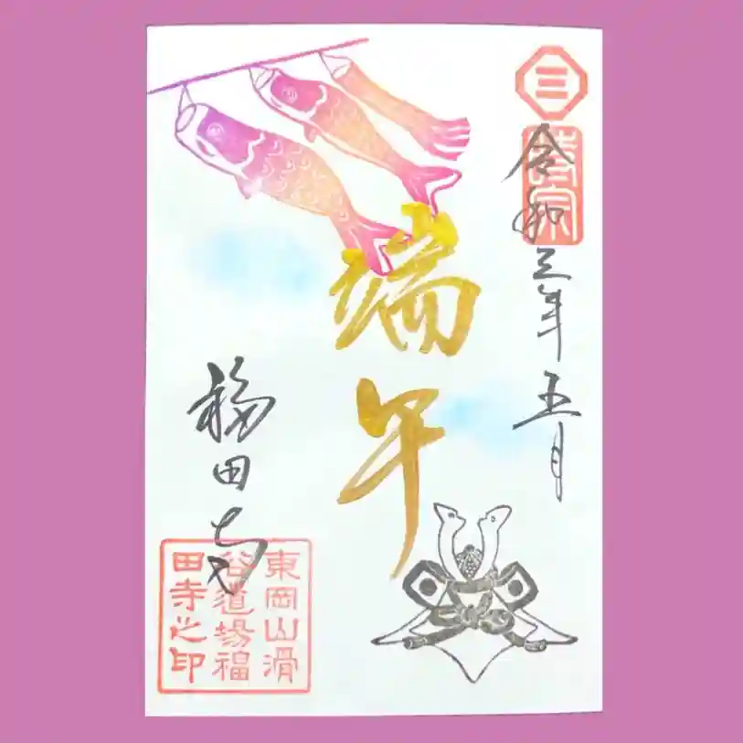5月5日の端午の節句になぞらえ、鯉のぼりと兜を押印します。