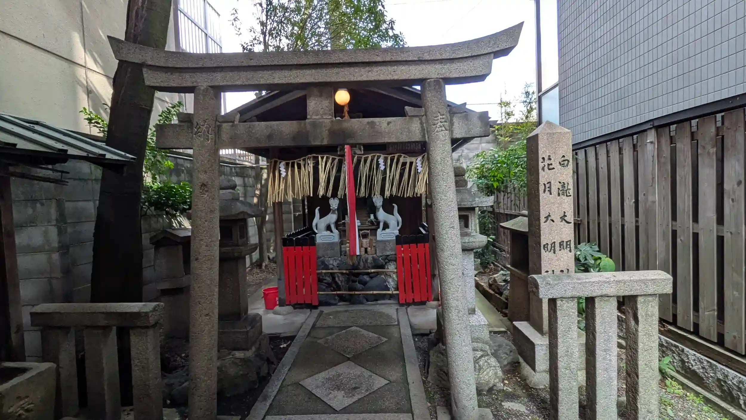 道を変えると神社仏閣に当たる・・・さすが京都🤣まだまだ初見の神社がありました。こちらは亀山藩(現・亀岡市)の松平紀伊守の京屋敷跡でもあるそう。先日亀岡の眞福寺で松平の殿様屋敷の移築された書院を見せていただいていたのでなんか縁があるのかな?🤗投稿見てるといつもは門が閉ざされているみたいなのでやっぱり御縁あるのかしら?御祭神は二神で亀山藩邸の鎮守神である白瀧大明神と明治に合祀された親鸞聖人ゆかりの大泉寺花月亭鎮守の花月大明神とのこと。細い路地のような境内で鰻の寝床(稲荷さんだから狐の寝床かな?😂)と称される京都らしい町中の神社でした🤗