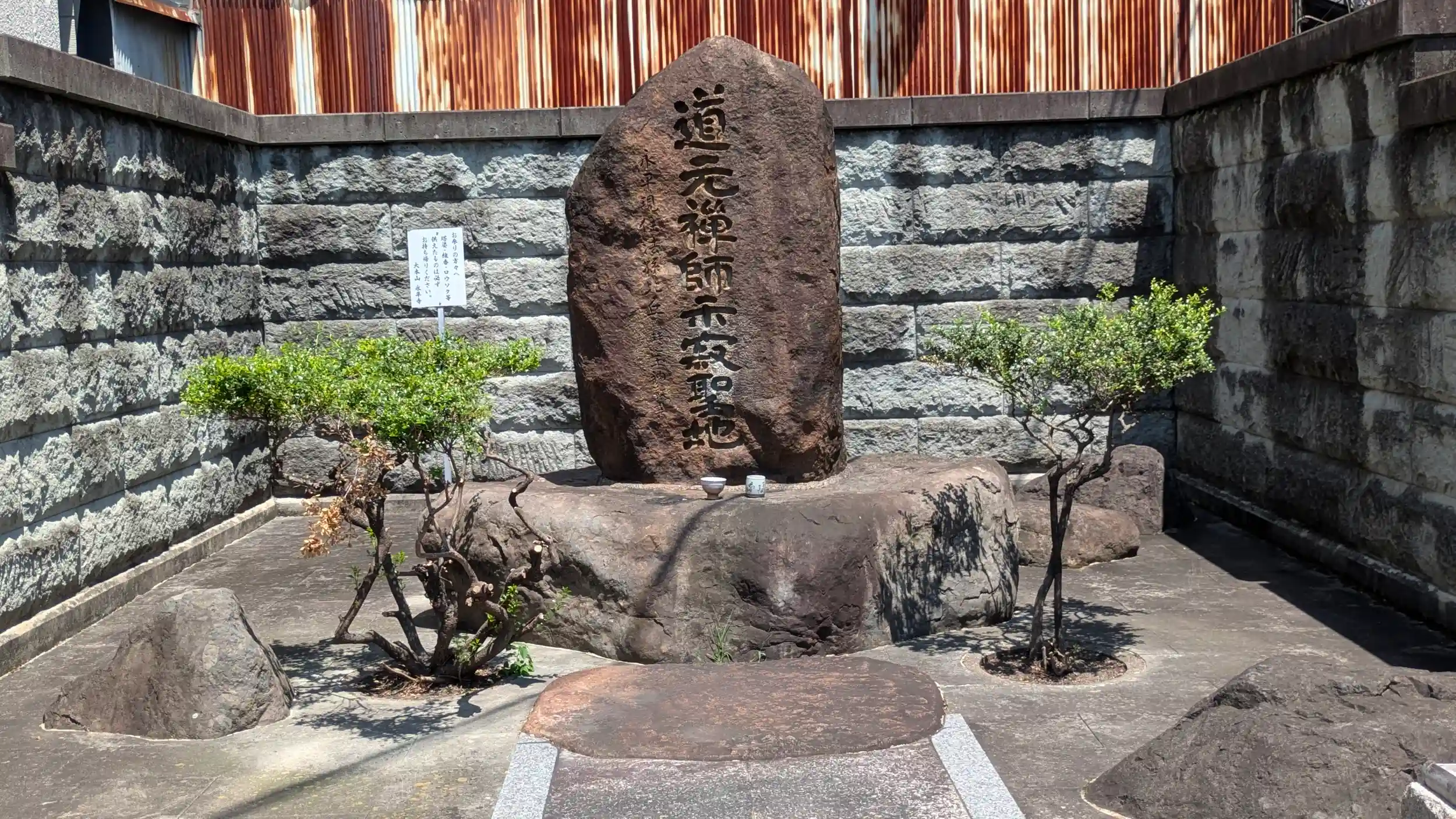 駒札には禅師の略歴が掛かれており、石碑の区画入り口に門があるが鍵はかかっていなかったので石碑前でのお詣りも可でした。碑の横にはお供え物は持ち帰りくださいとの注意書きが永平寺の名で立てられていらので永平寺の飛地境内の可能性も。きれいにされていたので立地からすれば近くの宗仙寺さんが管理されているのかもですね。