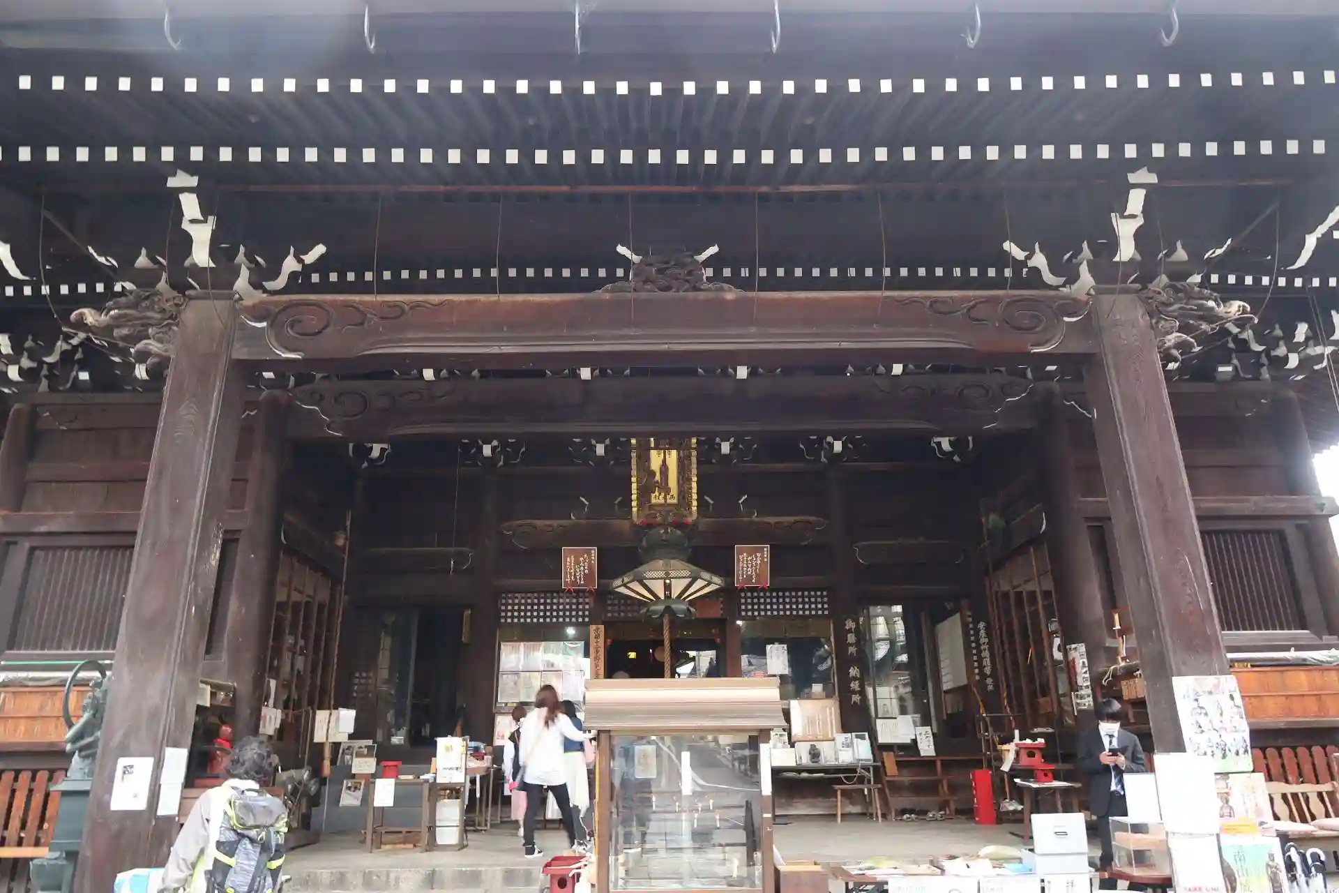 本堂左側の角に観音堂。拝観コースになっていますが堂内に入れる訳ではなく堂外から。少し扉が開けられていました。(通常は扉が閉まっている?) 洛陽三十三所観音霊場の札所で、札所本尊は十一面観音坐像で、真ん中の厨子に2躯安置されていました。他には弘法大師坐像、如意輪観音像、不動明王坐像、役行者像が安置されていましたが、ちょっと遠くてあまりわからず。(毎月8日の手作り市の際の10時半から護摩焚きが行われるため拝観可との事。)