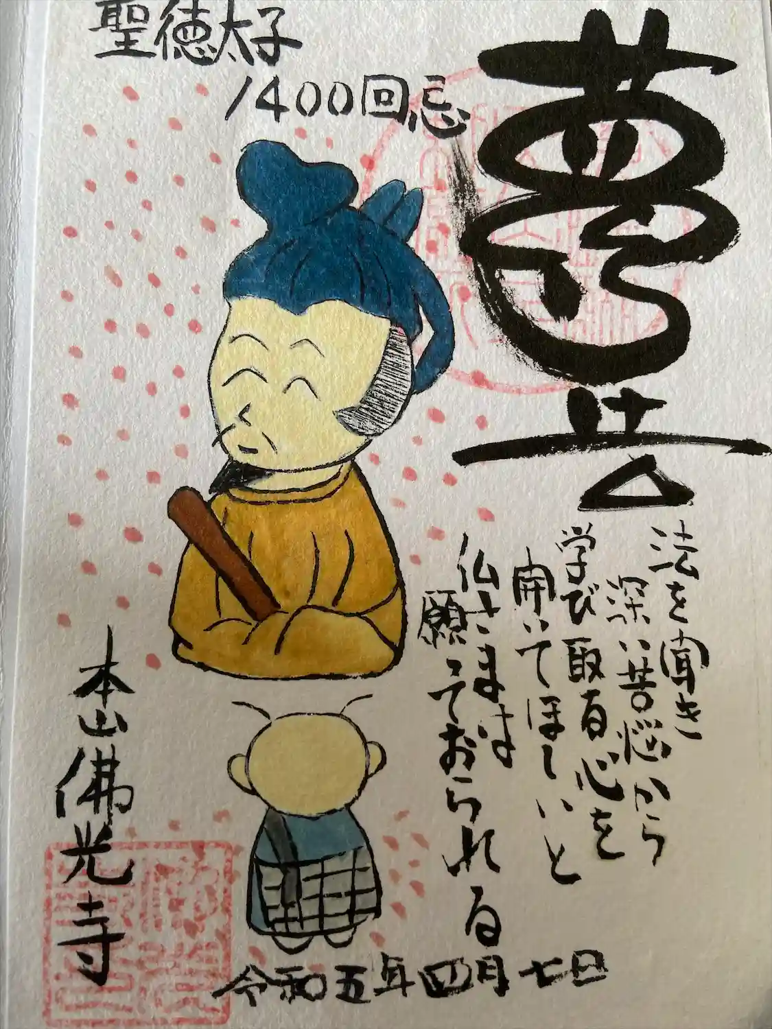 旅の最終日、ふと立ち寄ったお寺さんでした。通常の御朱印と聖徳太子の御朱印をいただきました。可愛いく…