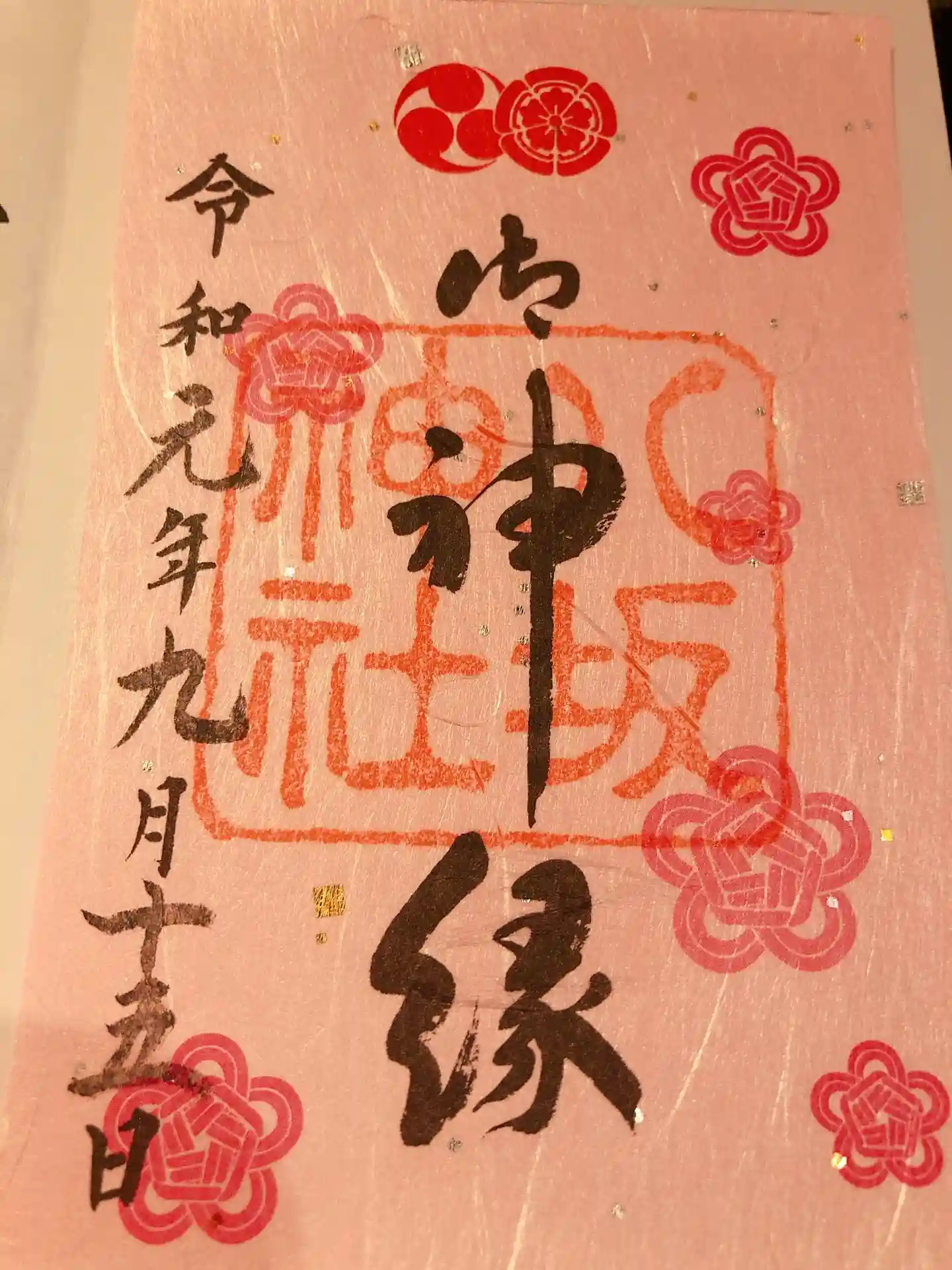 ピンクの紙にお花が散りばめられててとても可愛い御朱印でした☺️