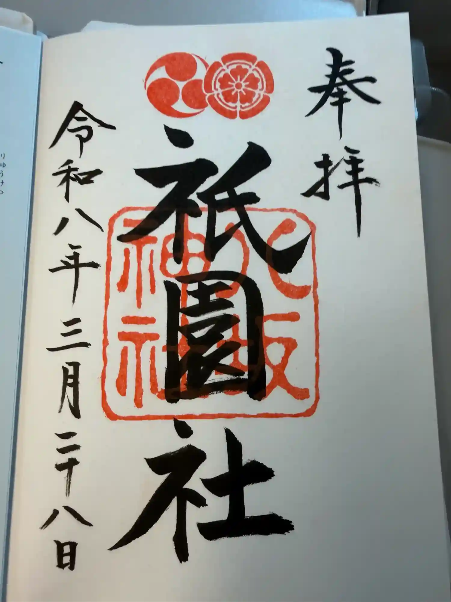 八坂神社御本社の御朱印。