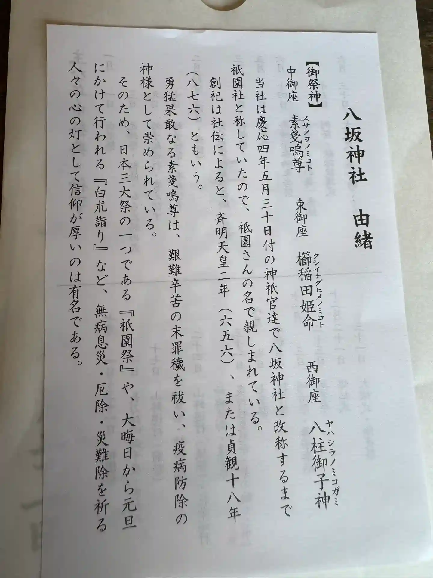 | ご由緒 | 江戸時代までは祇園社、または感神院と称した。