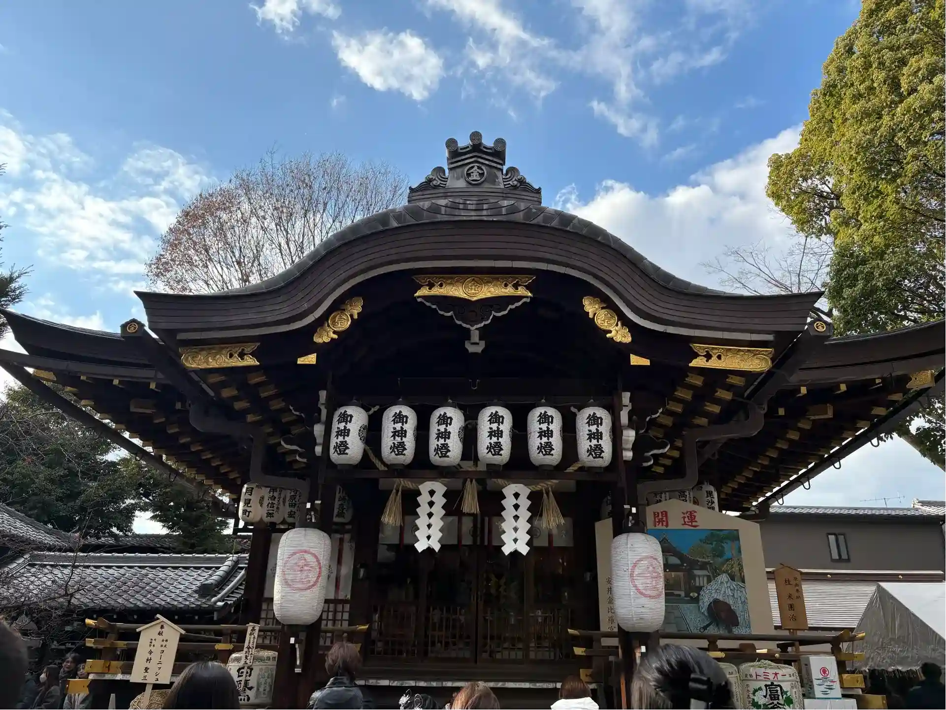 八坂神社から歩いて安井金比羅宮に向かいました。途中のお店で食べたスダチうどんが美味しかったです。鳥居脇の碑には安井神社と記されており、天満宮も鎮座しています。境内は大変混雑していて、どうも縁切り縁結び碑をくぐる順番待ちの列が主な原因のようでした。