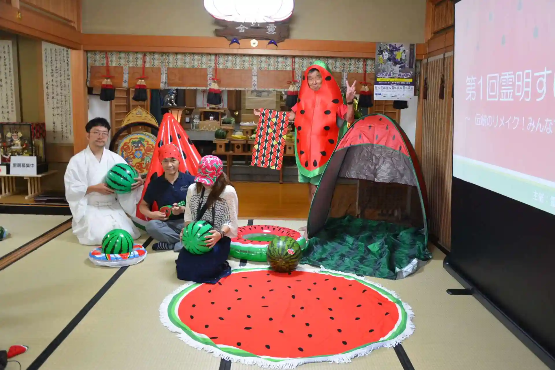 毎年恒例の霊明神社2世神主・村上美平の功績を称え、そのご神徳にあずかるスイカを食するお祭りごとを行います(食物感謝祭を兼ねます)