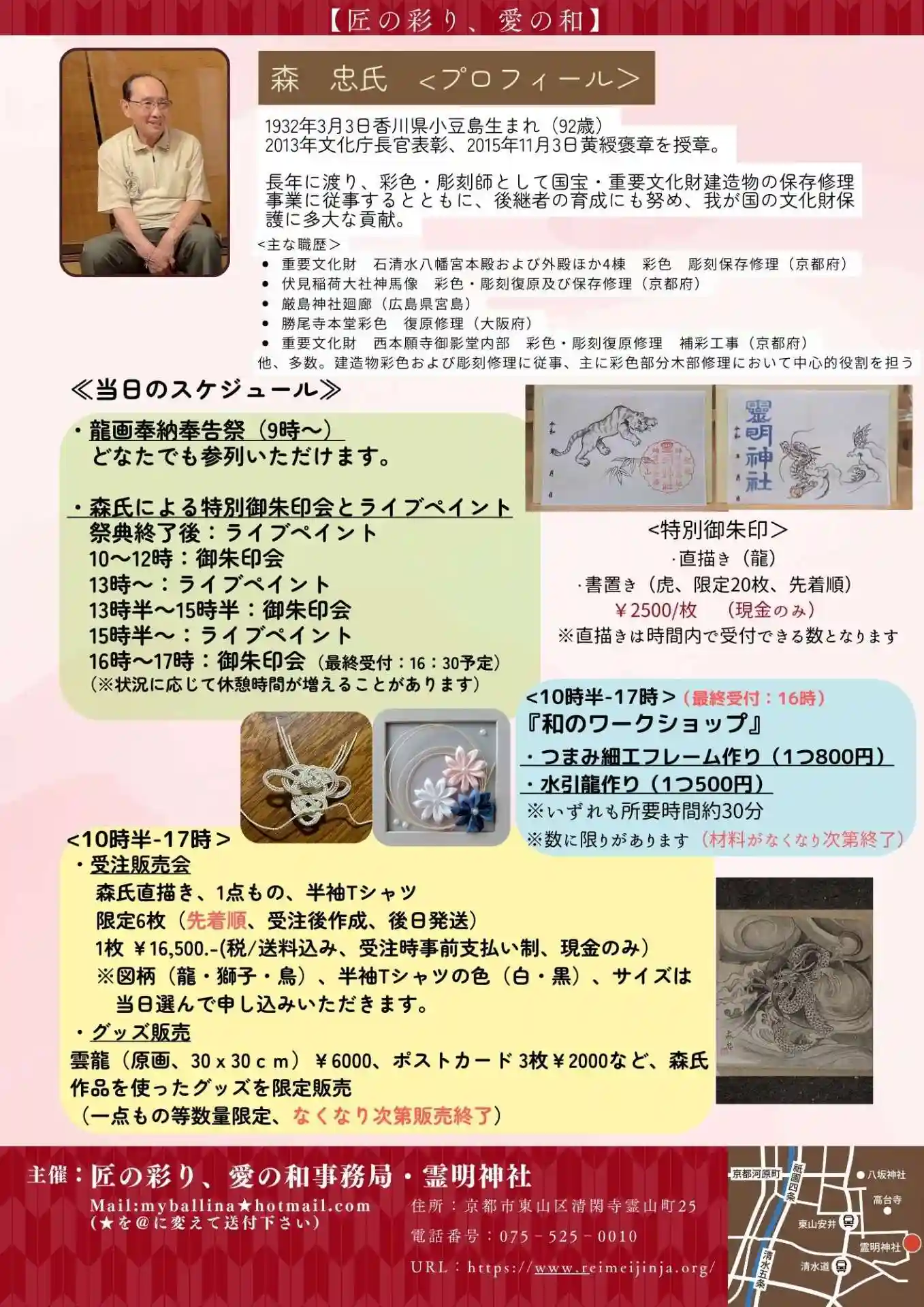 このことについて奉納奉告祭を斎行するとともに、森氏が描く限定の特別御朱印会やライブペイントを開催し、有志の皆さんによる催しごとが行われます