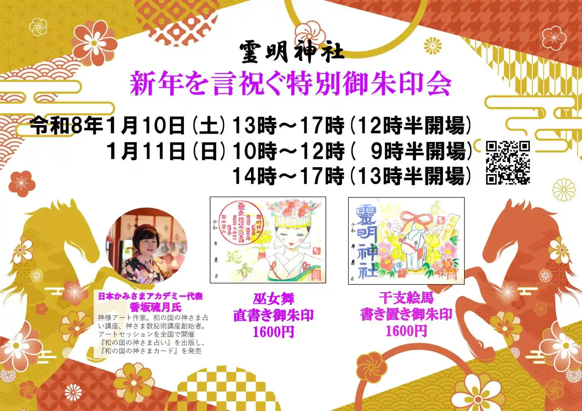 新年を言祝ぎ、よりよき1年となりますようにお参りいただき、日本かみさまアカデミーの香坂琉月氏による干支の御朱印を受けていただければ幸いです