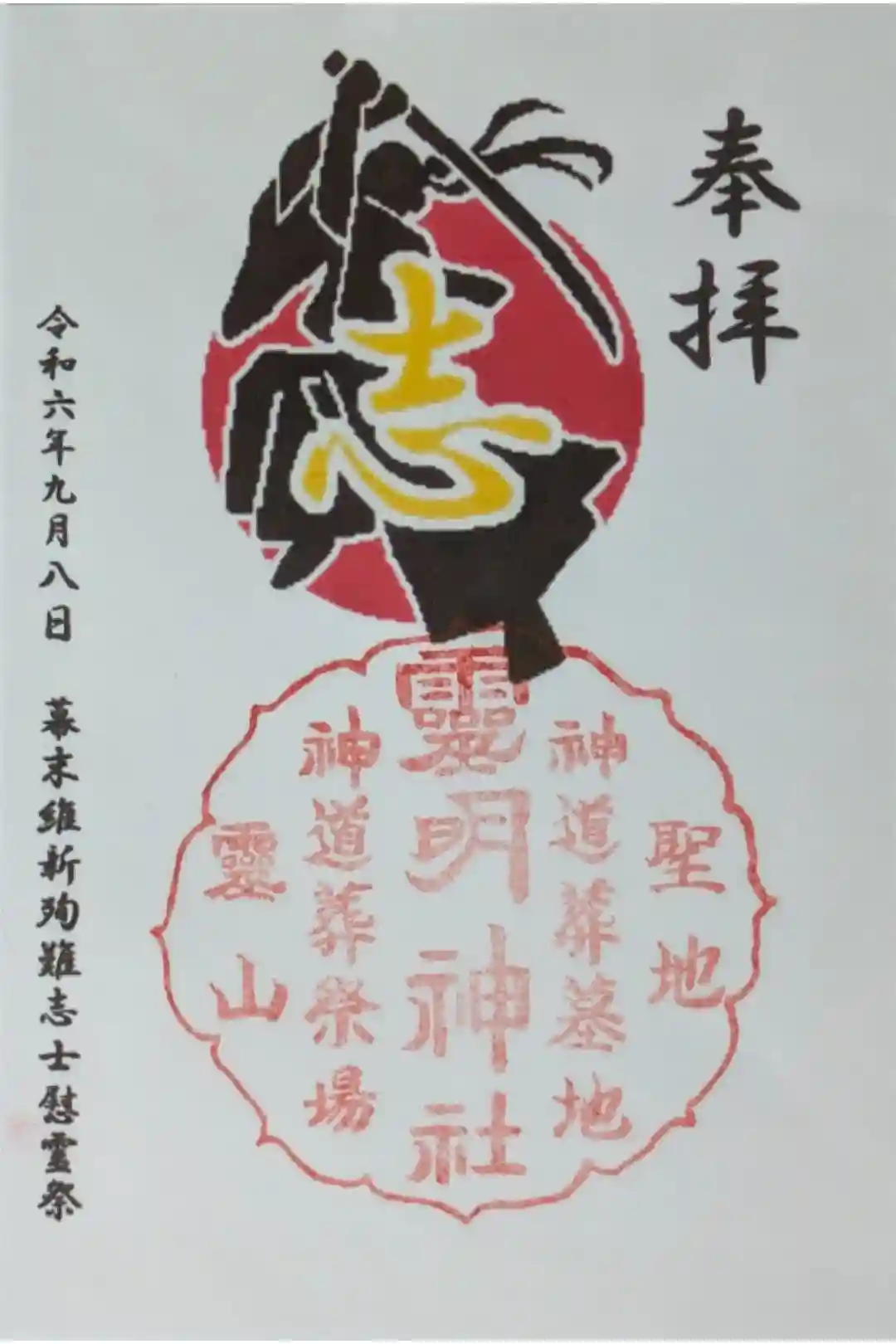 令和6年9月8日幕末維新殉難志士慰霊祭御朱印