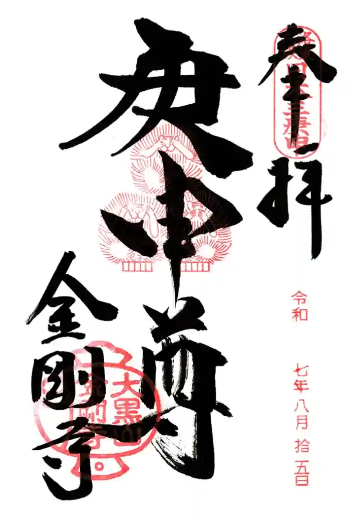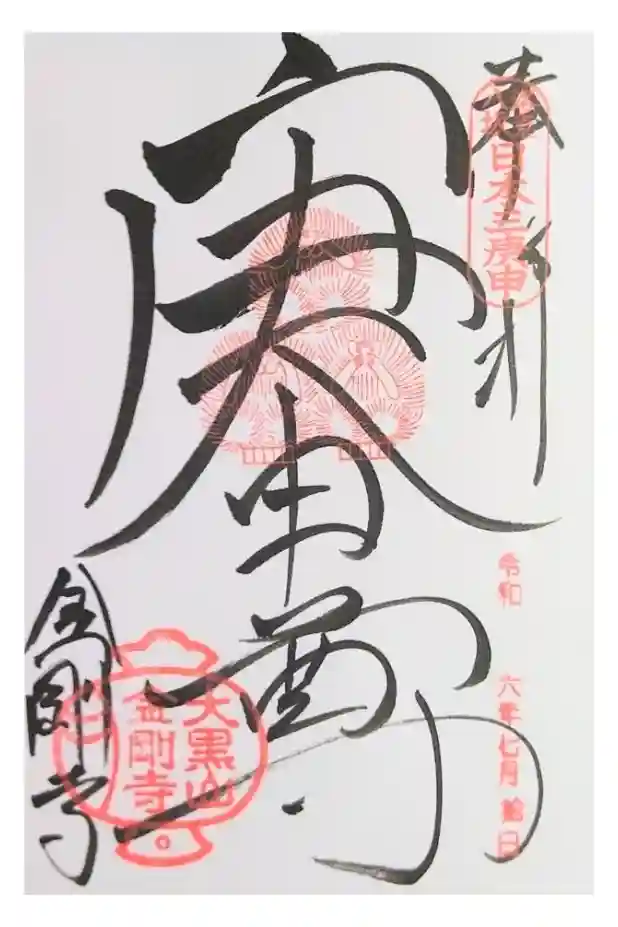 金剛寺の御朱印を直書きでいただきました。中央に、三猿(見ざる言わざる聞かざる)の朱印が押されています。