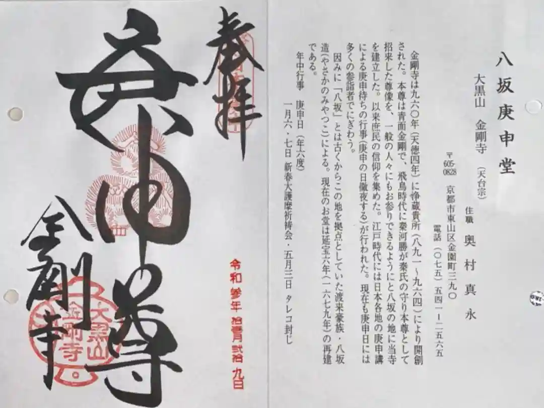 金剛寺(八坂庚申堂)の御朱印・御朱印帳