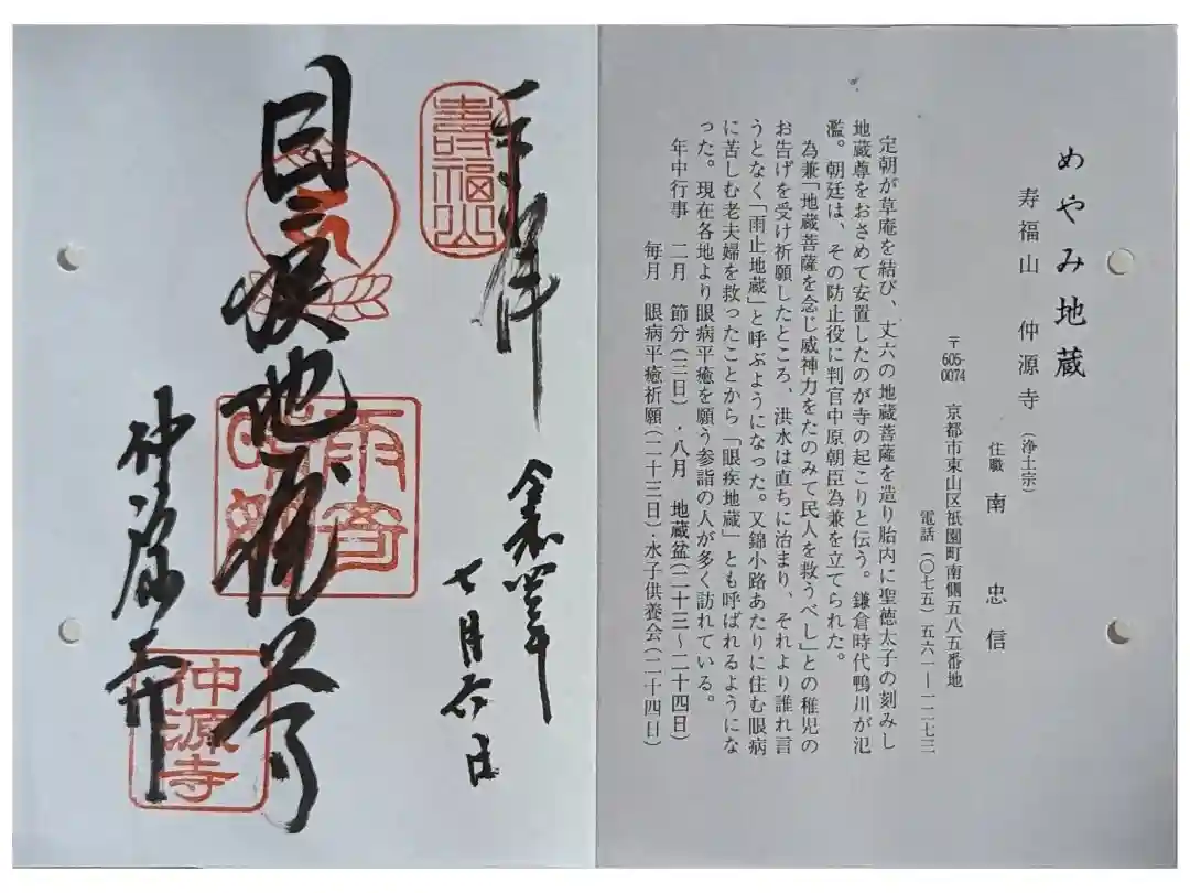 目疾地蔵御朱印