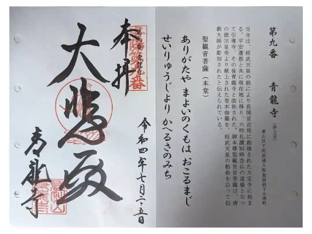 清水寺から産寧坂を抜けて洛陽観音霊場9番青龍寺への参拝。朝早くの訪問ながらご丁寧な対応をして頂きま…