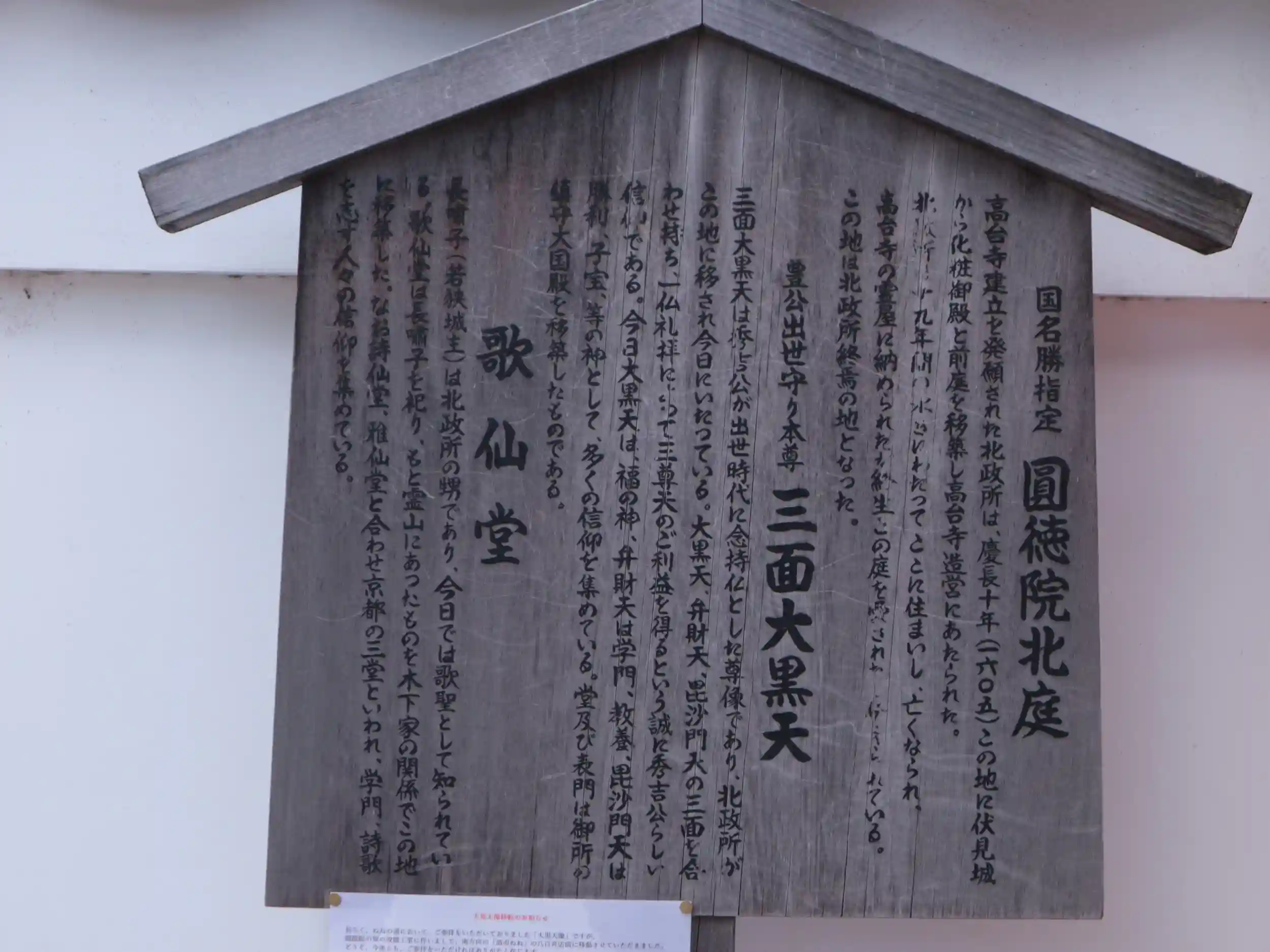 2021年11月12日は甲子の日。天赦日などの幸運日で甲子の日は大黒天さんへお参りするのが良い日と、去年よりこの日にお参りしようと準備をしておりました。いつも寺務所が閉まっていて、今回初めて御朱印を頂けました。三面、左右には毘沙門天さんや弁財天さんもおられます。豊臣秀吉公が常に懐に入れていた。その後はねねさんが生涯ずっと大切にされたそうで本物は秘仏だそうです。