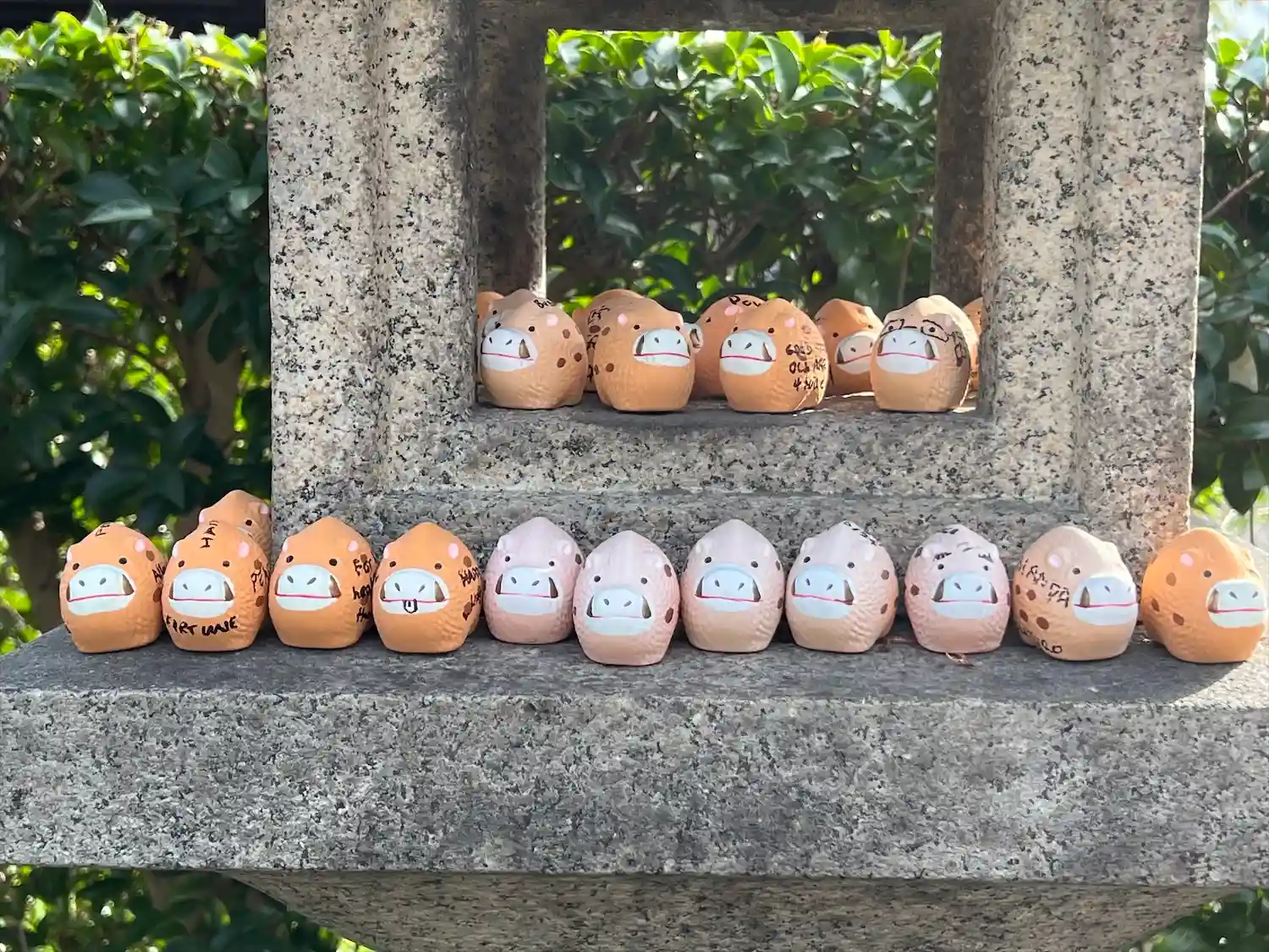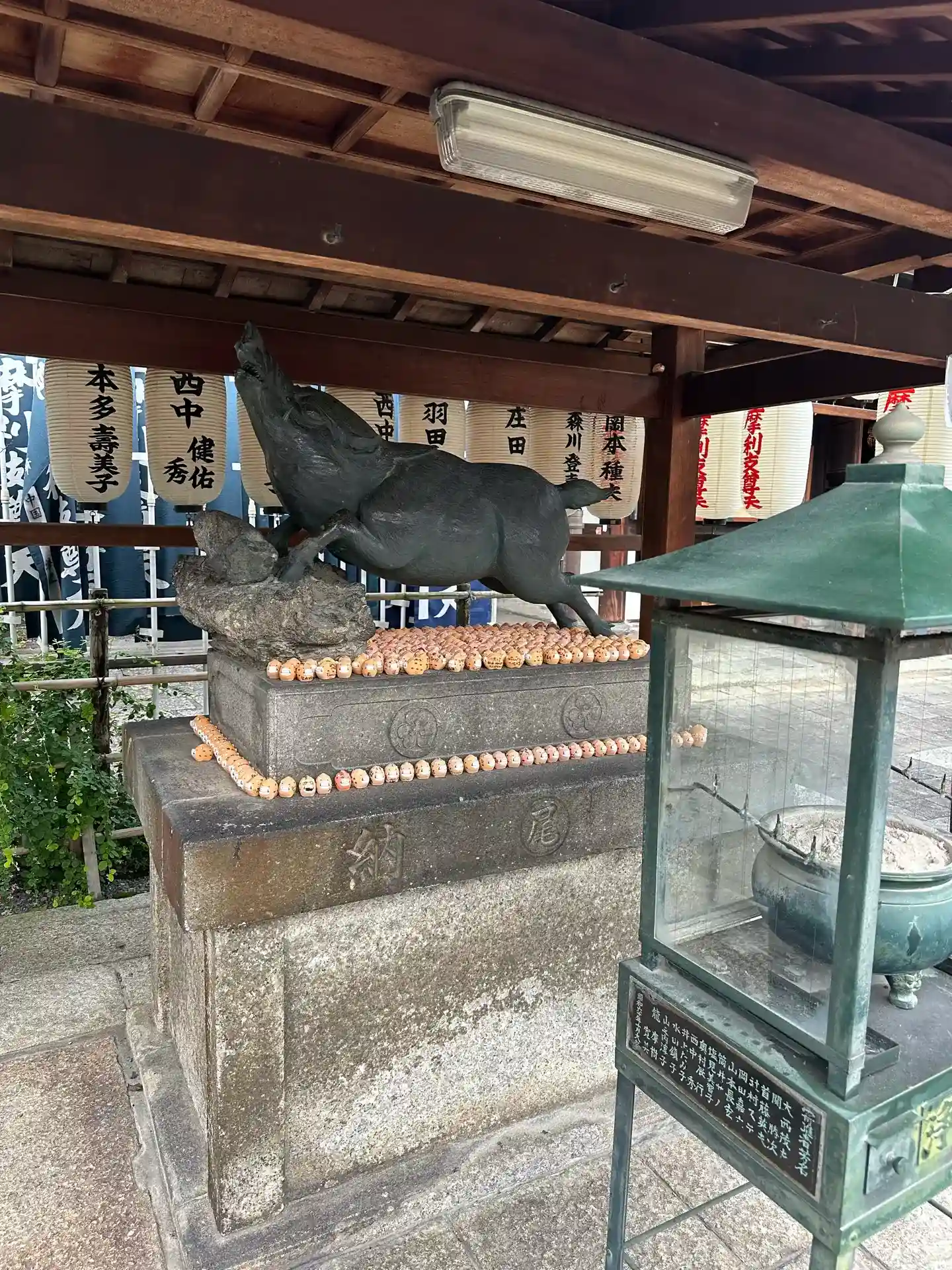 狛猪や石灯籠もにイノシシのお守りがズラリと並んでいました