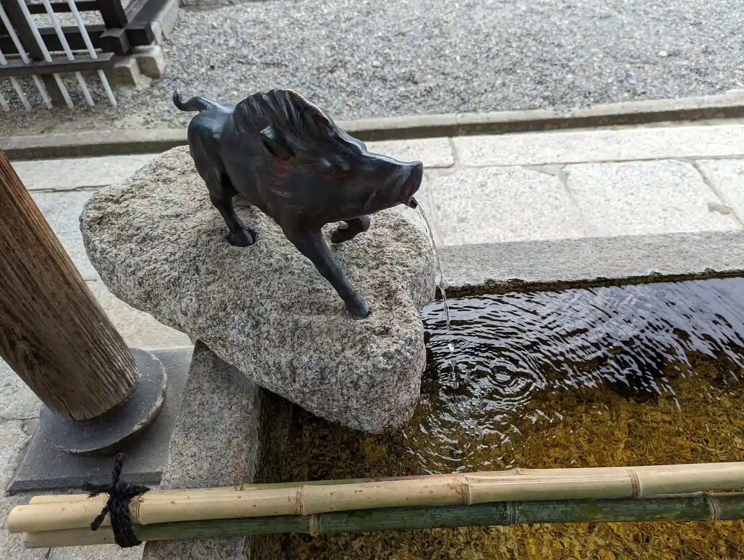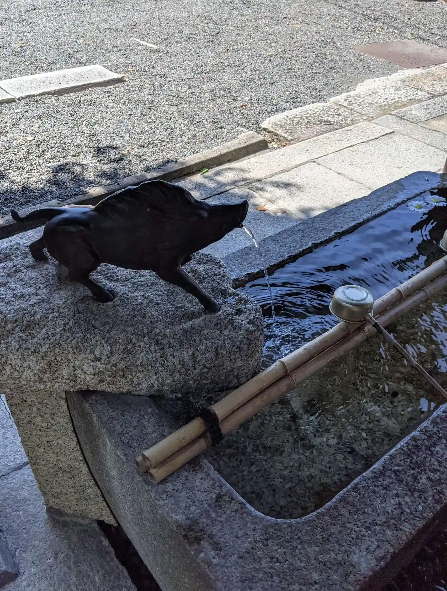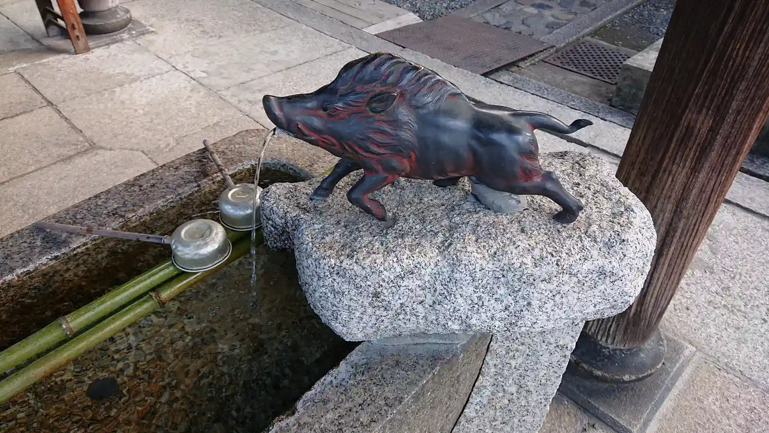 手水舎には口から水を吐き出すユニークな猪が設けられています