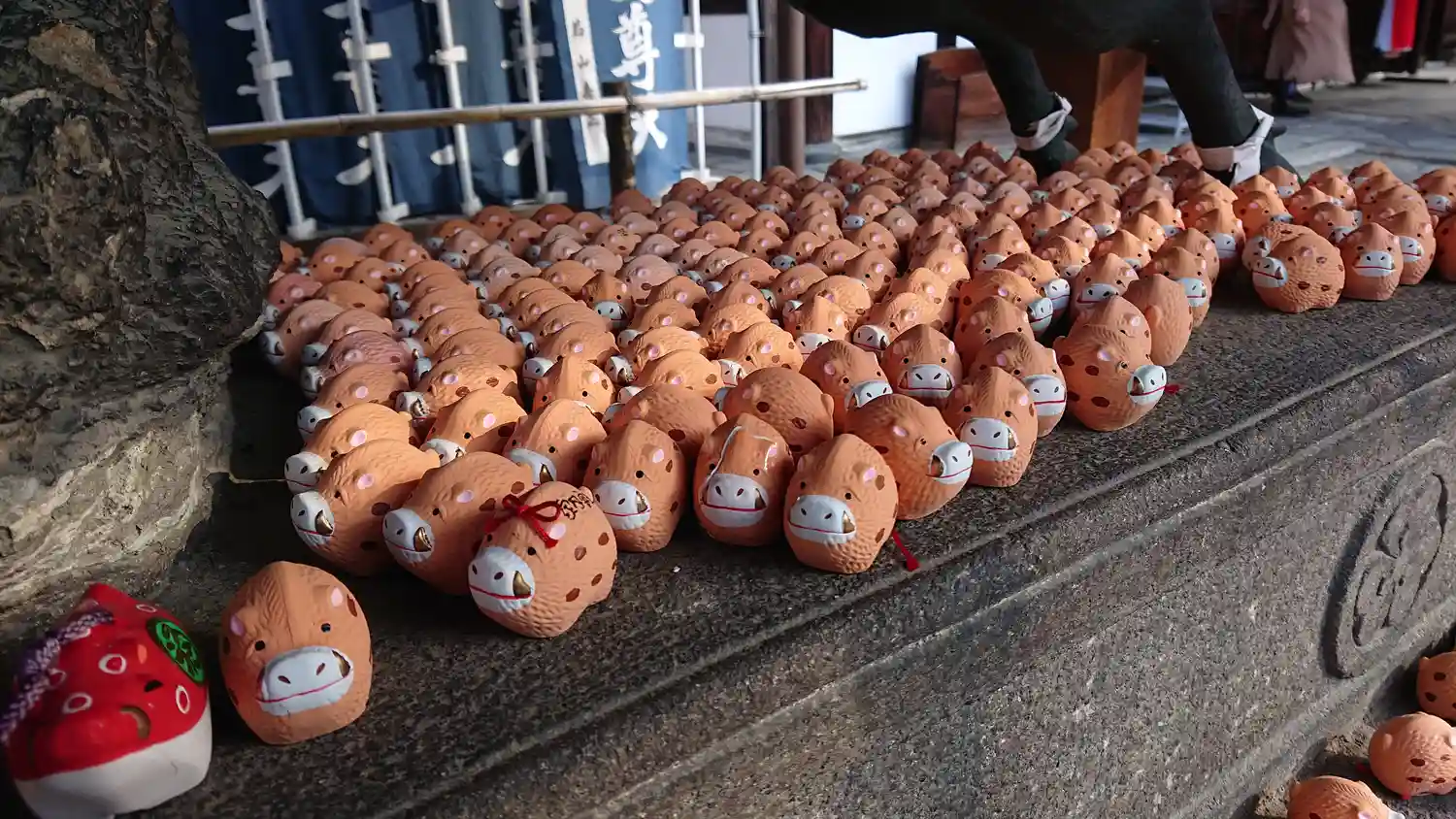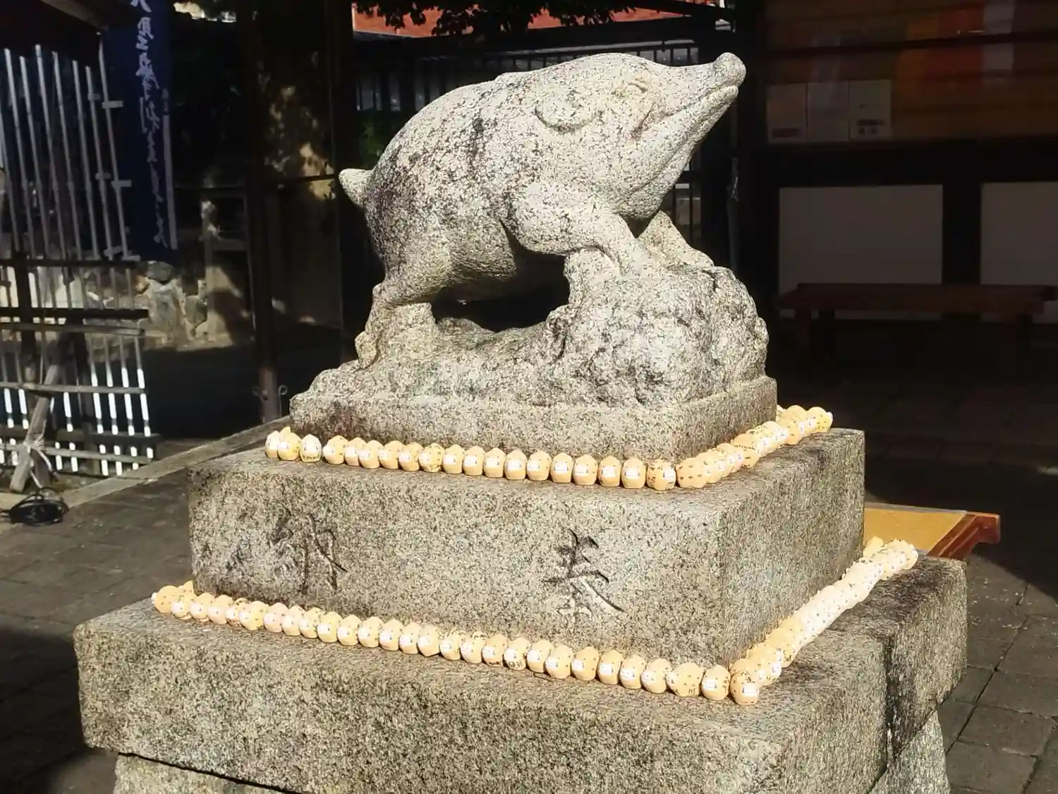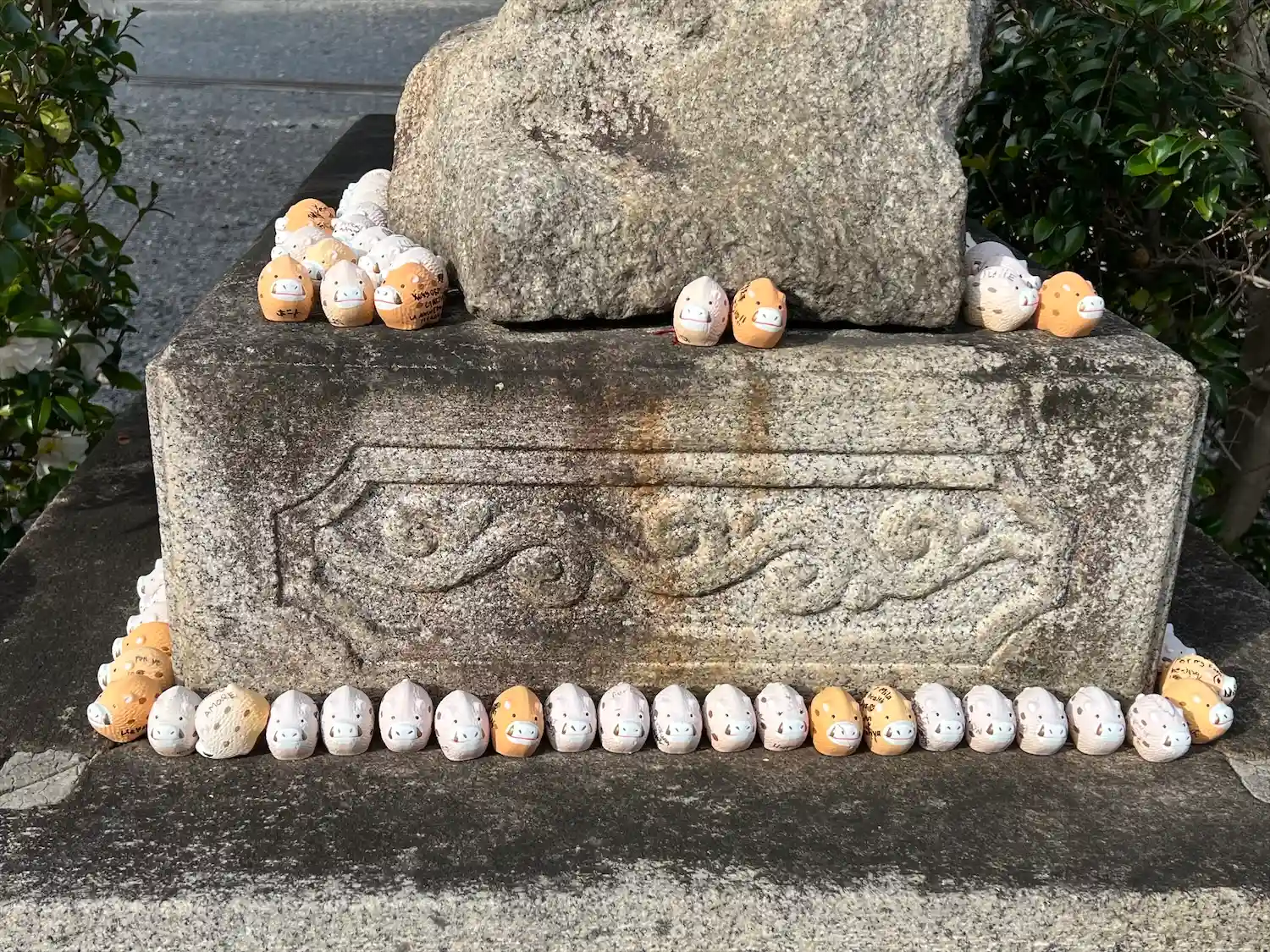 境内には、沢山の亥の像があります。